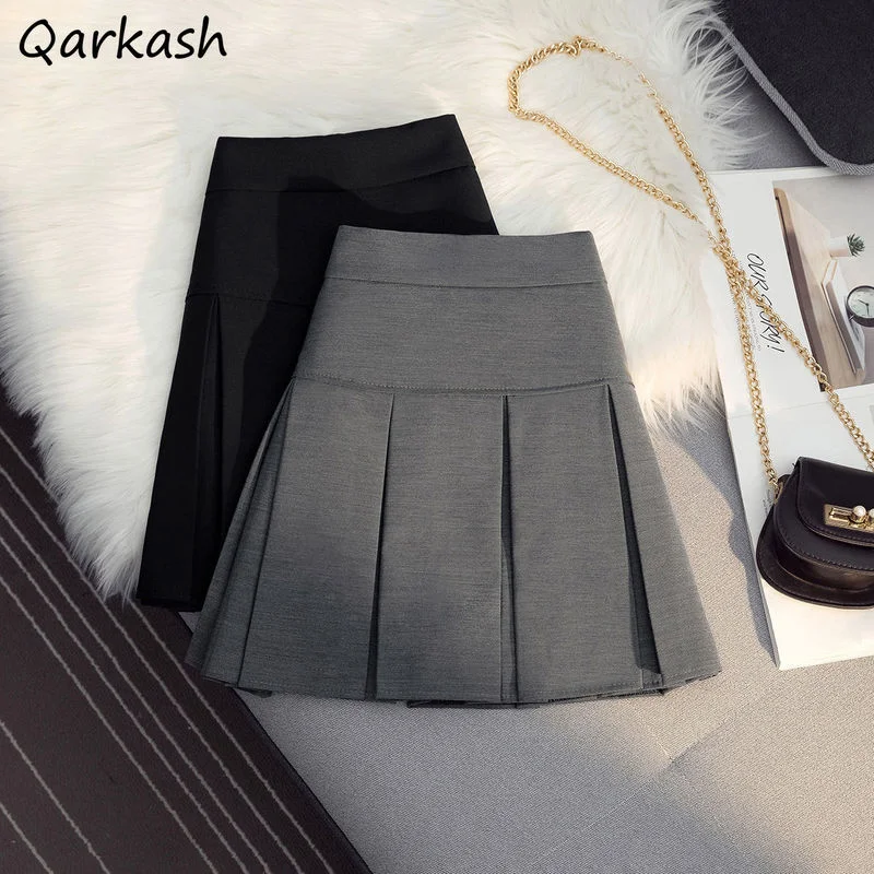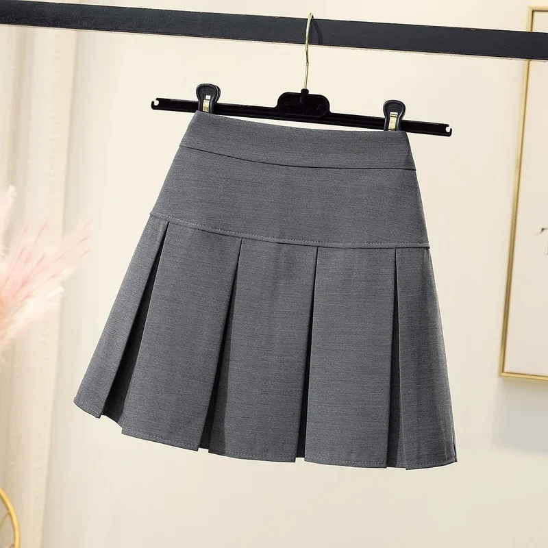 FREE SHIPPING Solid Color Pleated Skirts Daily Simple Patchwork JKP7186