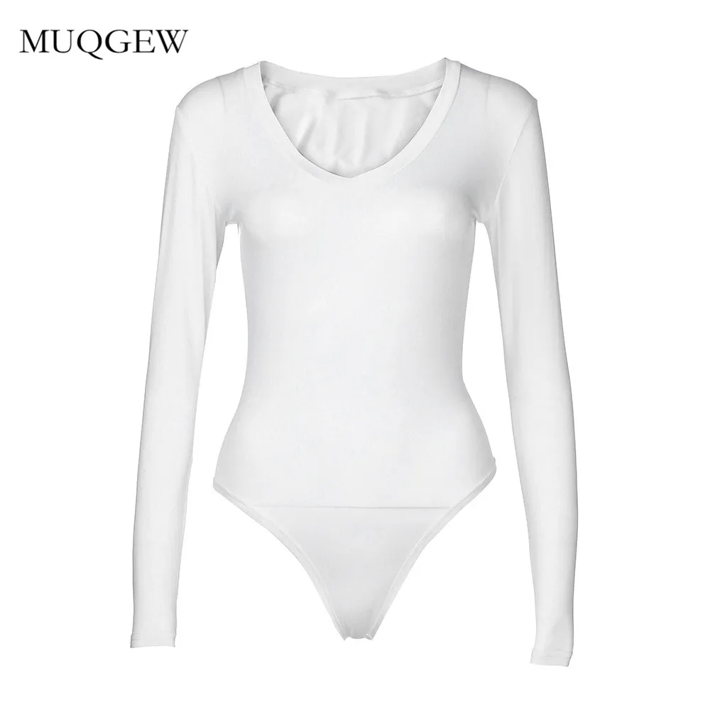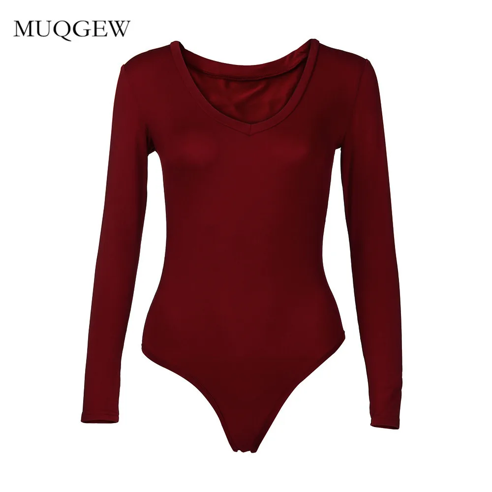 FREE SHIPPING Solid V-Neck Stretch Long Sleeve V Neck Bodysuit JKP1336