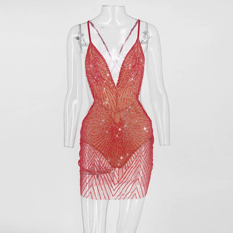 COSYGAL Spaghetti Strap Sexy Dress Women V Neck Bling Bling Backless Sequined summer dresses Night Club Wear Mini Party Dress