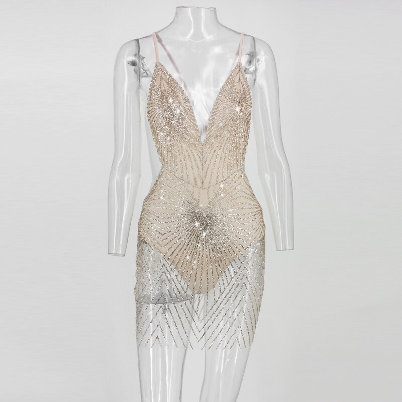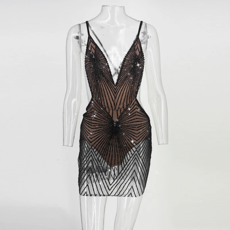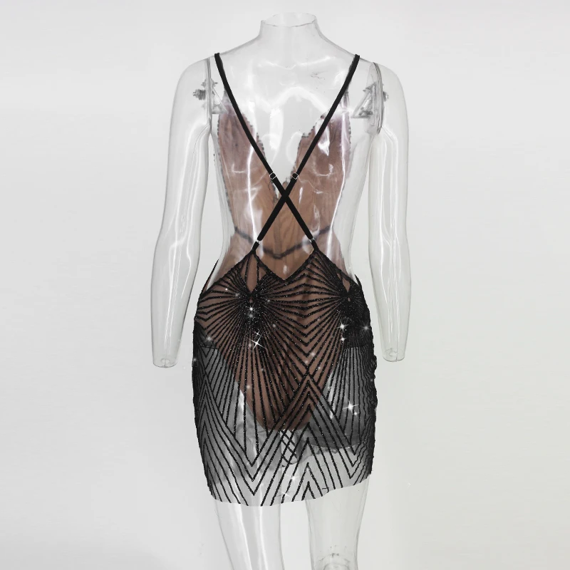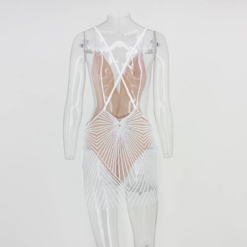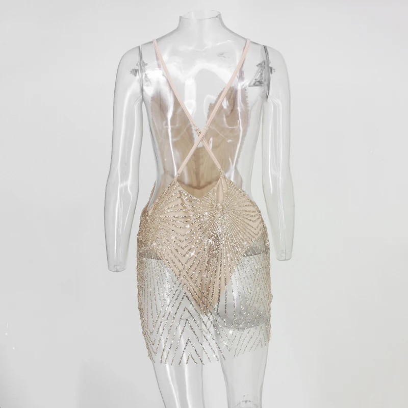 FREE SHIPPING Spaghetti Strap Sexy Dress Women V Neck Bling Bling Backless Sequined summer dresses Night Club Wear Mini Party Dress JKP2436