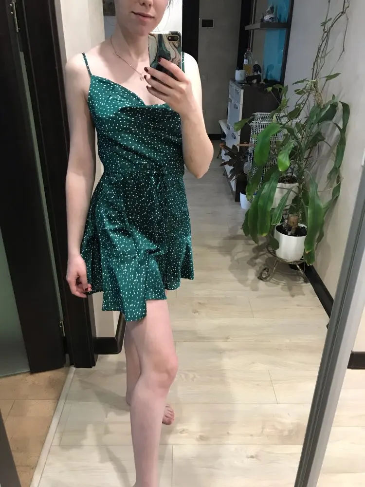 The dress is amazing! the size s perfectly suited for 160 height and 47 kg. the color is bright, saturated. the fabric is similar to satin. the store was well done for two weeks delivered to rb. i recommend!