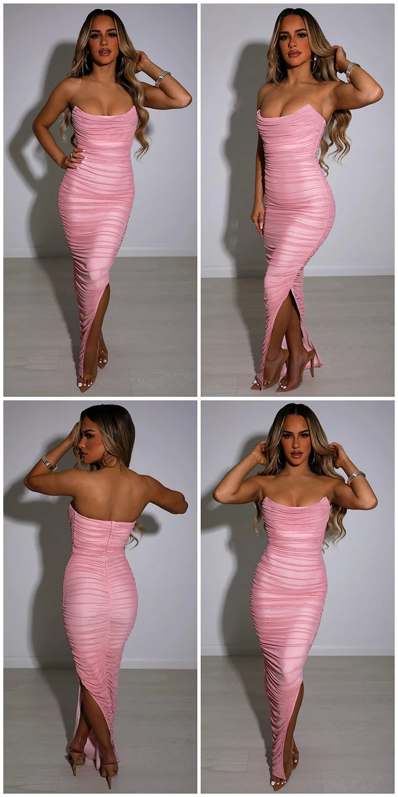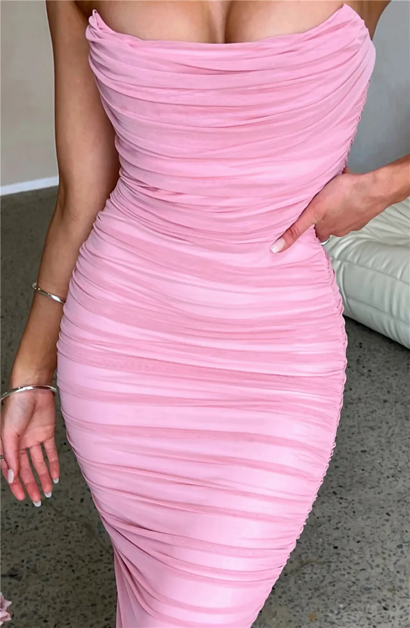 FREE SHIPPING Split Mesh Bodycon Maxi Dress Robe Strapless Backless Sleeveless JKP6063