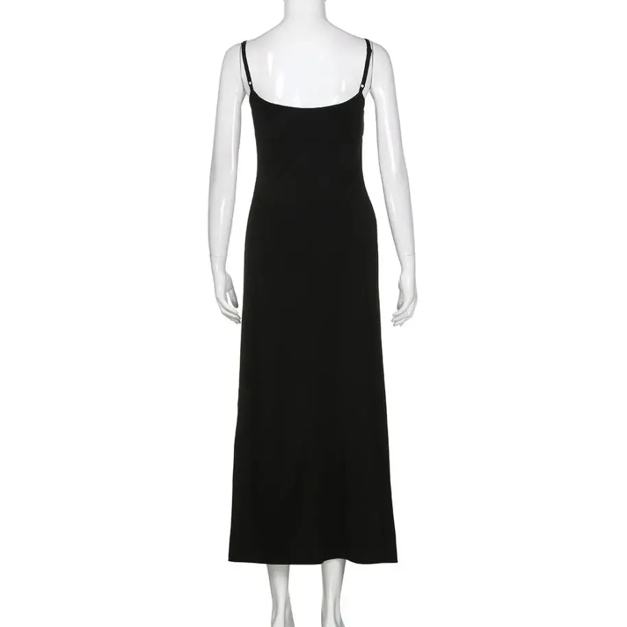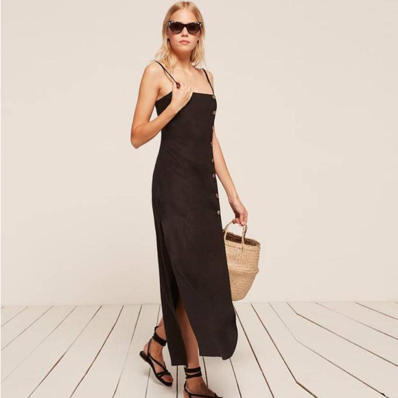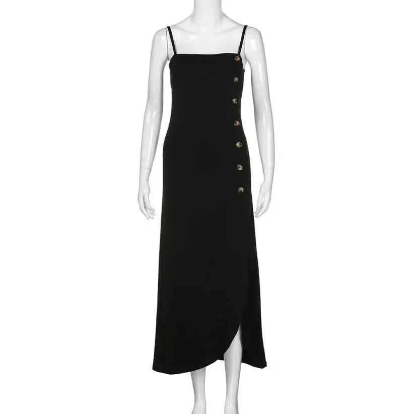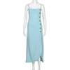 FREE SHIPPING Split Strapless Buttons Spaghetti Strap Dress JKP1358