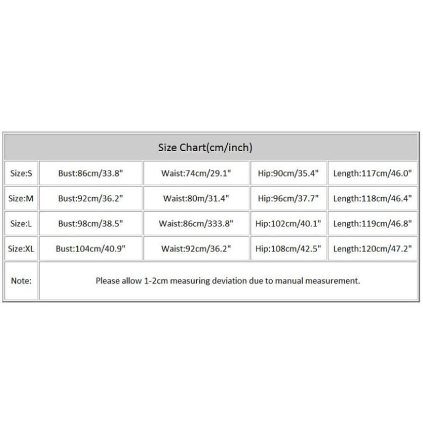 Size:XL Bust:104cm/40.9 Waist:92cm/36.2″ Hip:108cm/42.5″ Length:120cm/47.2″
