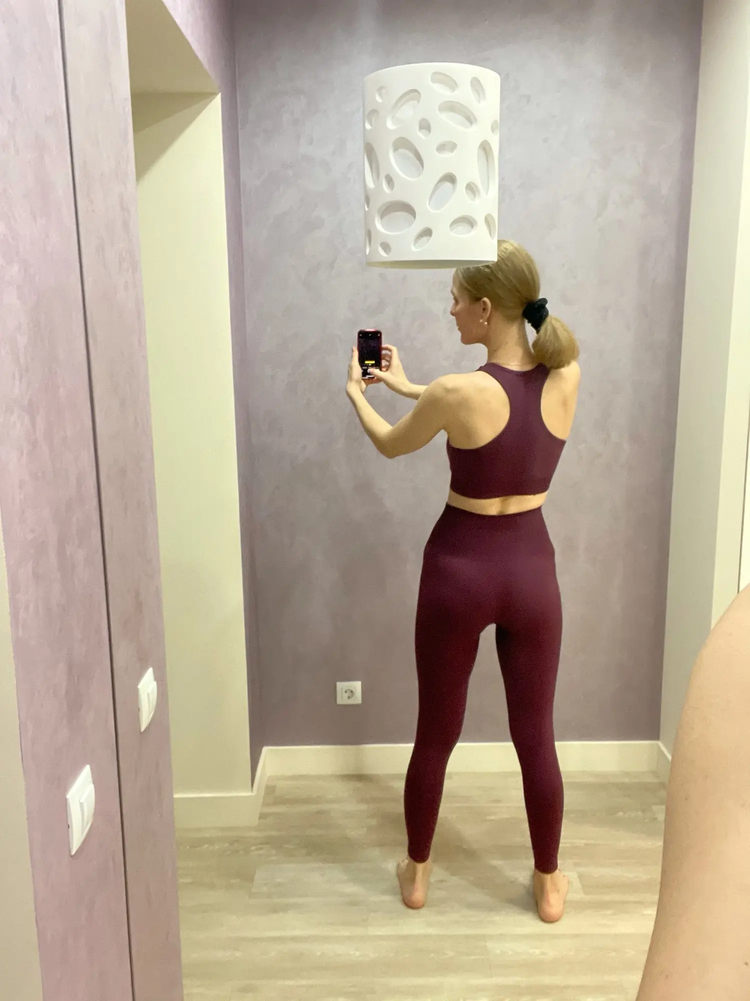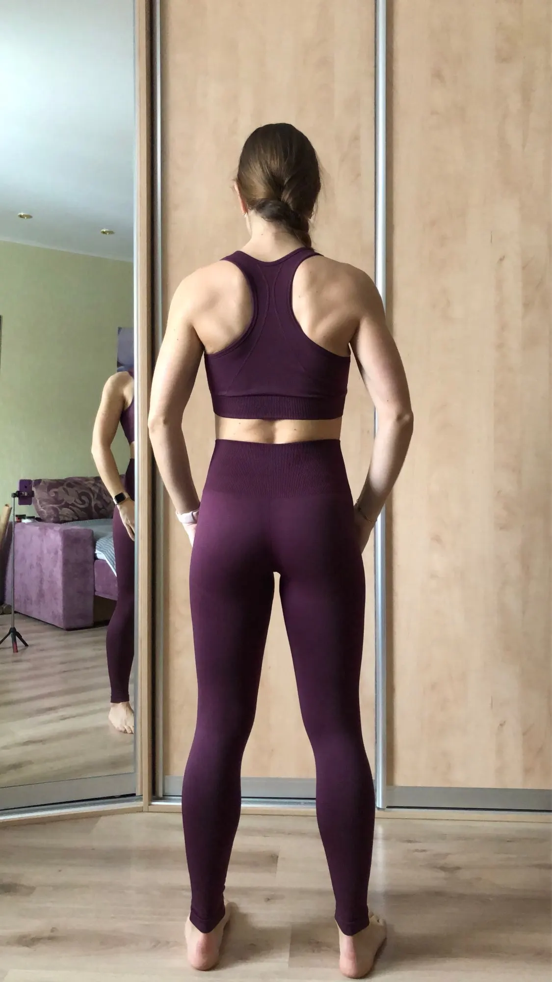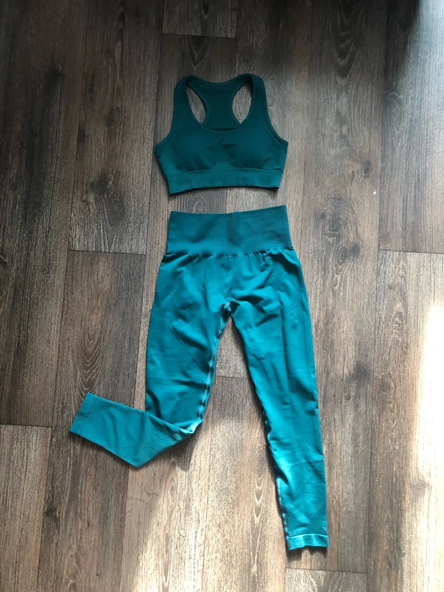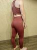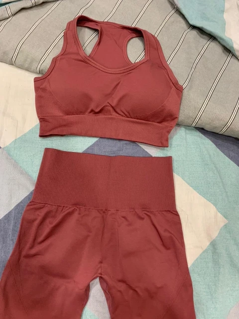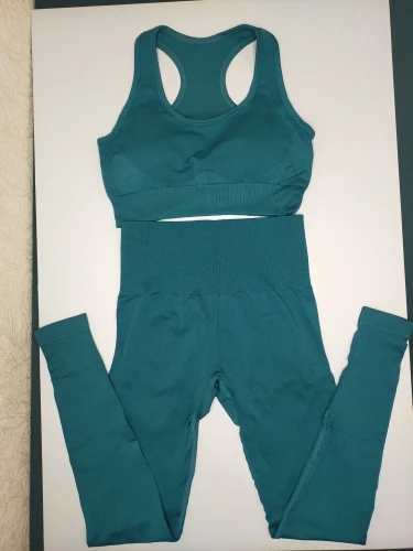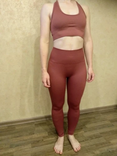 Костюм просто опупительный! Компрессия хорошая, мышцы все держит. Цвет точно как на фото. И он просто восхитительный. Переживала за топ, но зря. Сел хорошо, не плющит. Есть вставки-чашечки. Лосины не светят. А с бесшовным бельём вообще ничего видно не будет. Не смотря на то, что ткань плотная и с утяжкой, попу не уплощают. Довольна как слон! Посмотрю как в носке и закажу в других цветах. Доставка до Москвы быстрая в Пятёрочку. Спасибо продавцу.