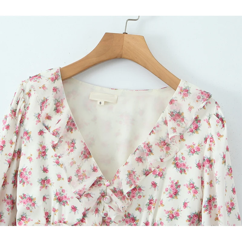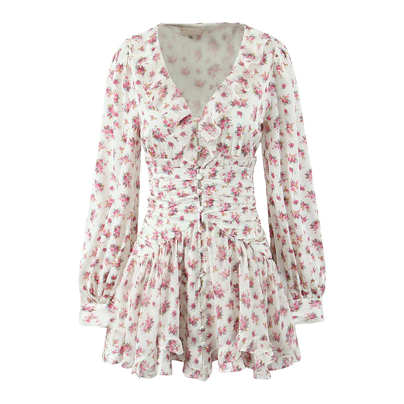 FREE SHIPPING Spring Dresses 2025 Boho Floral Print Ruffle Mini Dress JKP7388