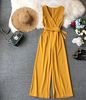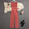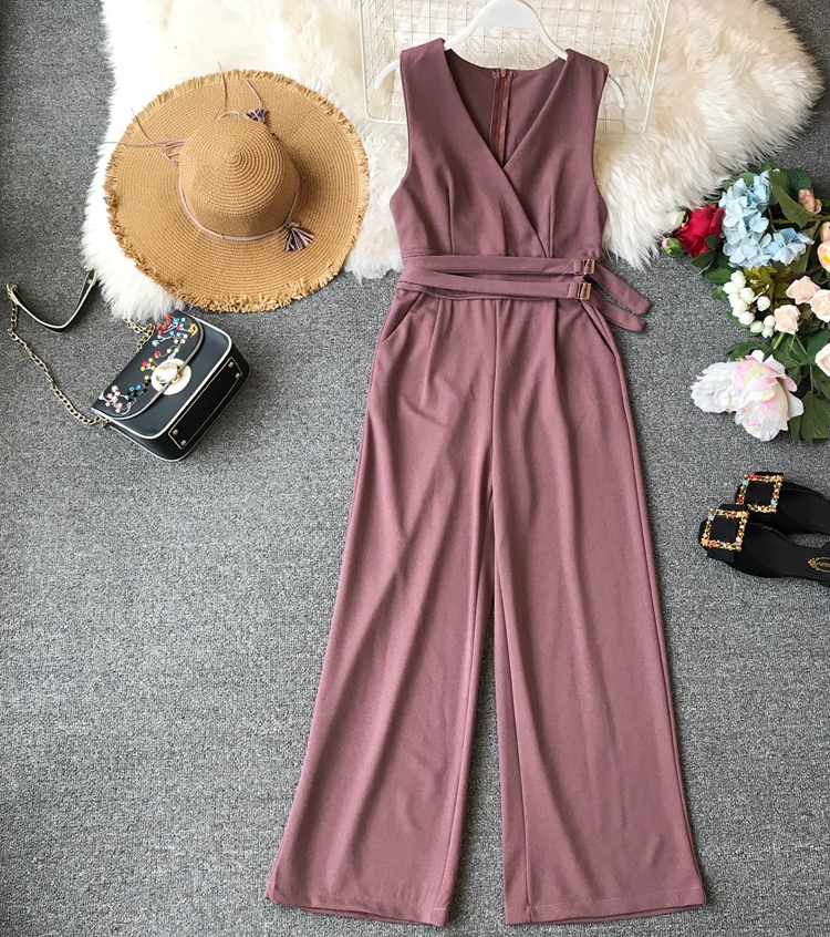 FREE SHIPPING Spring Ladies Sleeveless Solid Jumpsuits V-neck High Waist Sashes Women Casual Wide Leg Rompers JKP2009
