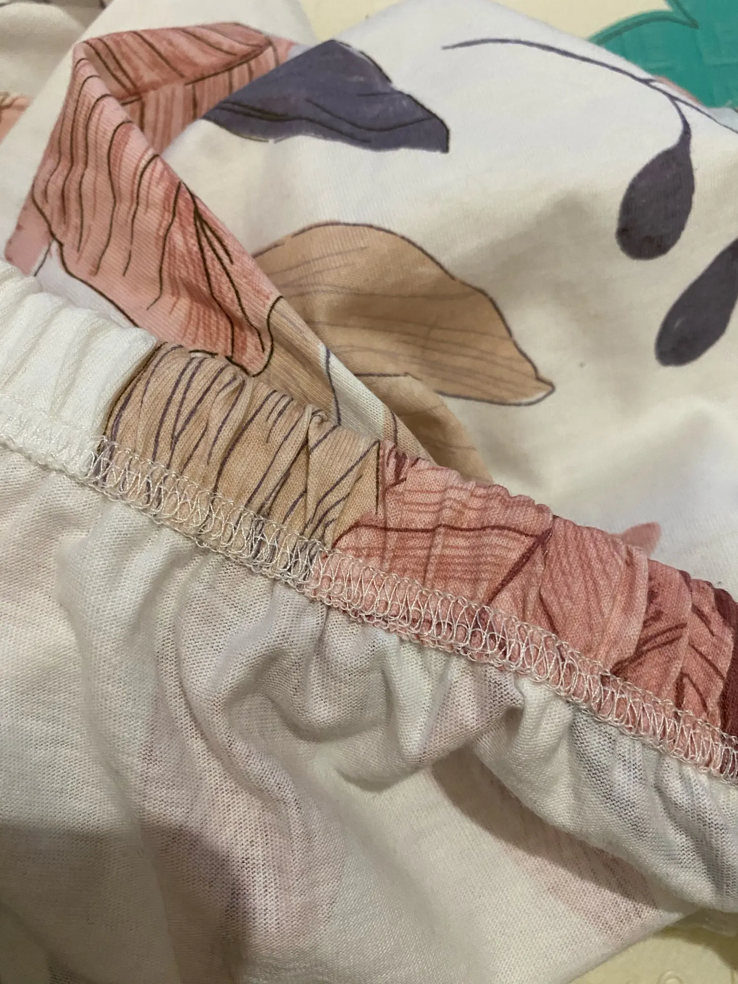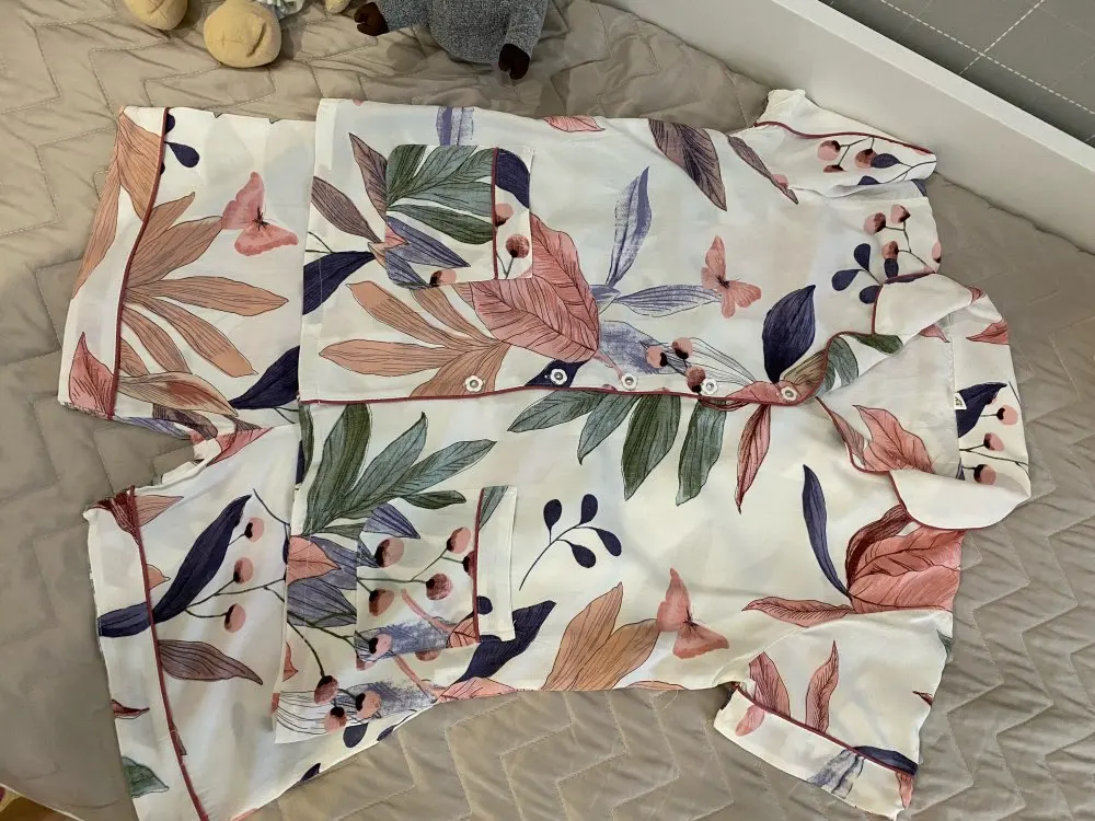 Pajamas are really good, even seams, pleasant to the body fabric. The parcel came quickly, as a gift an elastic band for hair. After washing did not change, washed for the first time at 30 degrees, I recommend to buy. On the photo size m on the parameters 163/58