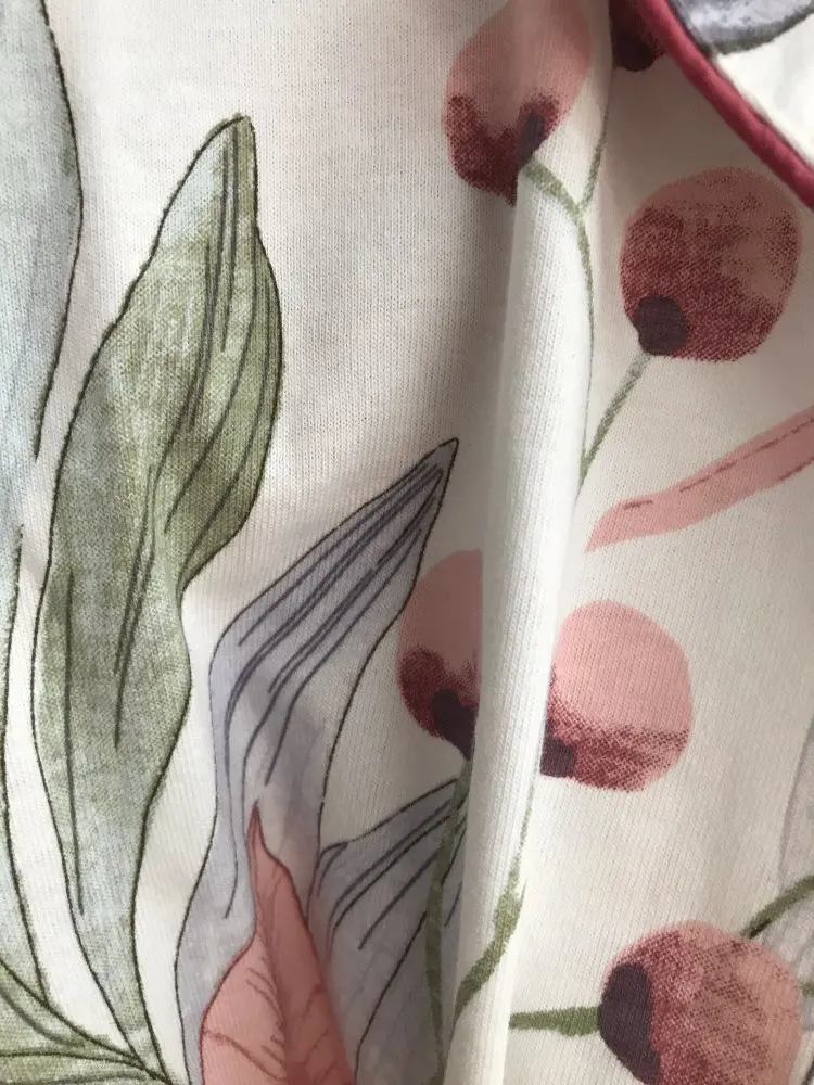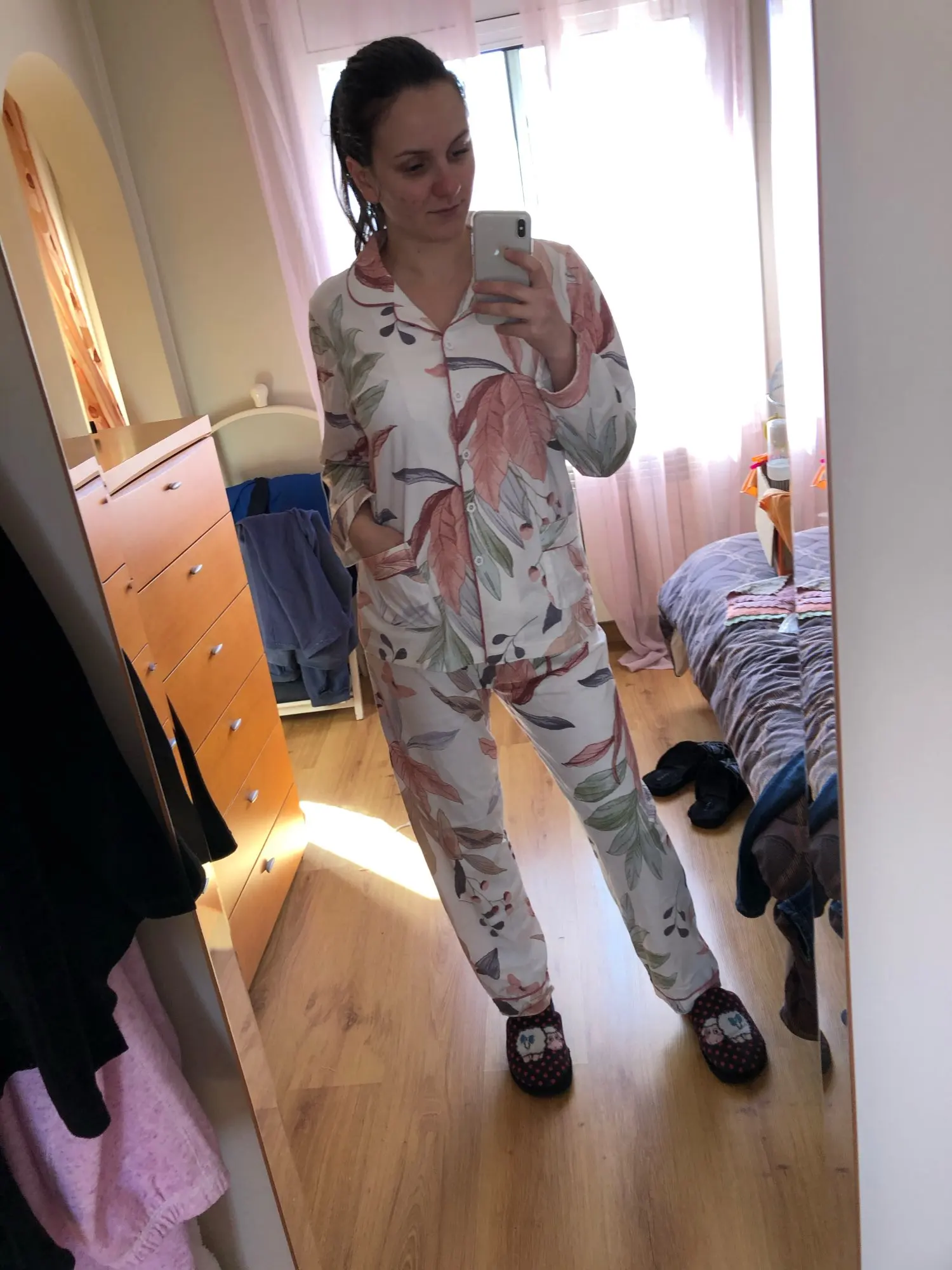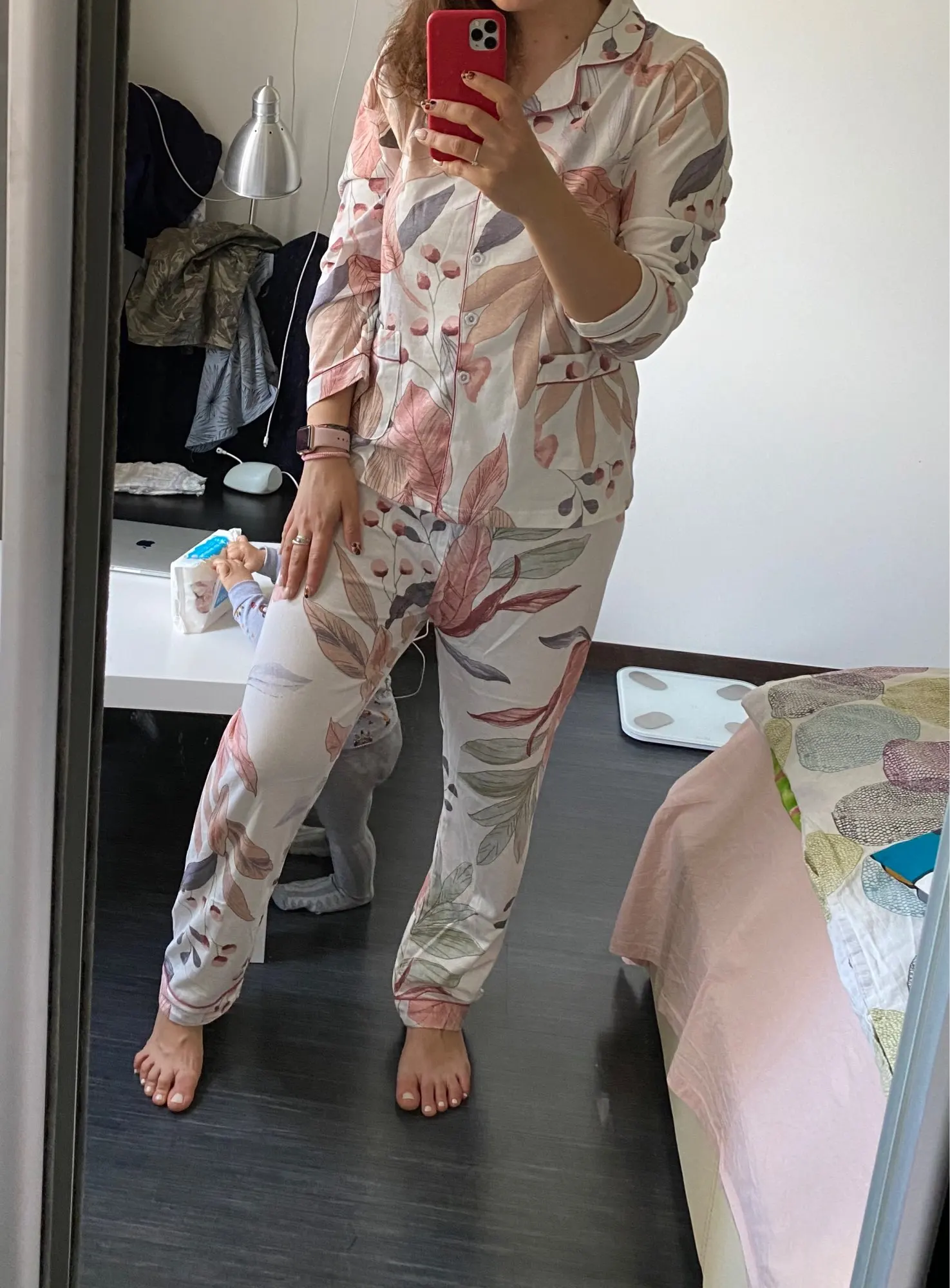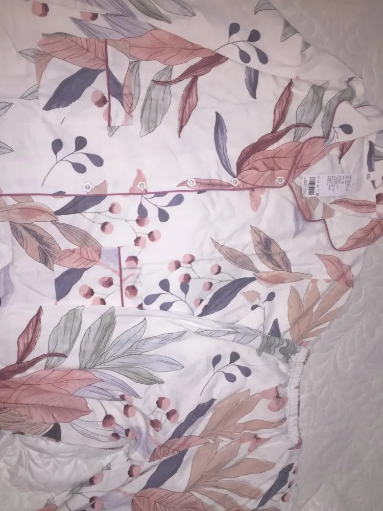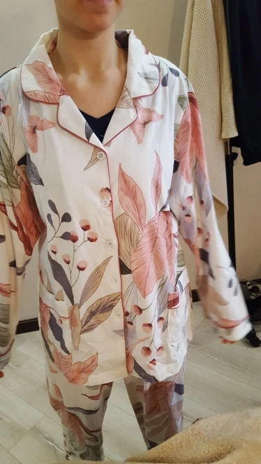 Delivery to Ukraine fast! Pajamas came without a smell, of excellent quality. All seams are processed. 100% cotton. Insured-I ordered a larger size than my own, focusing on the reviews of girls. But it turned out such an "oversize"! My size is M (90/70/94), and the village even on the stomach 8 months;)))