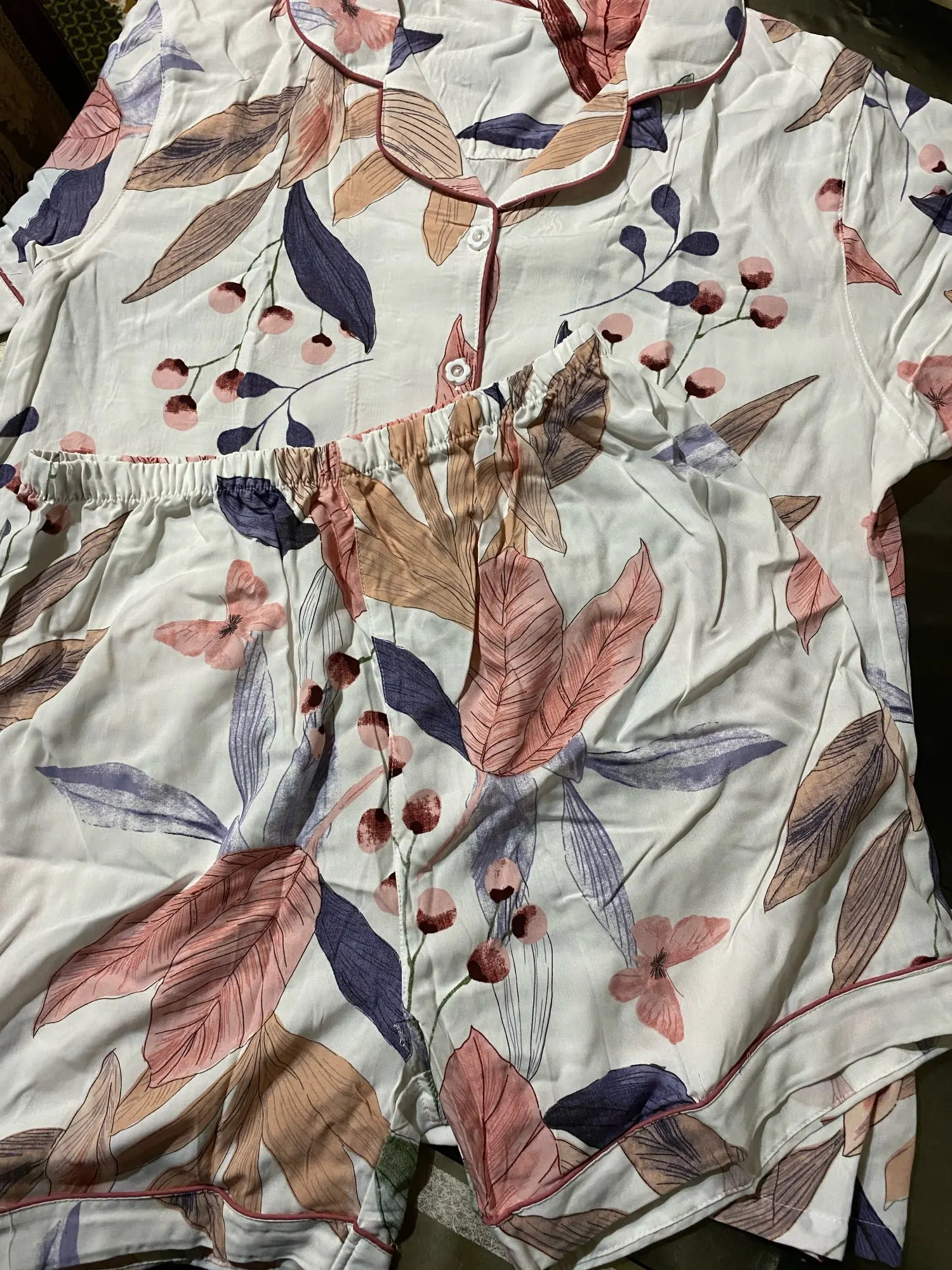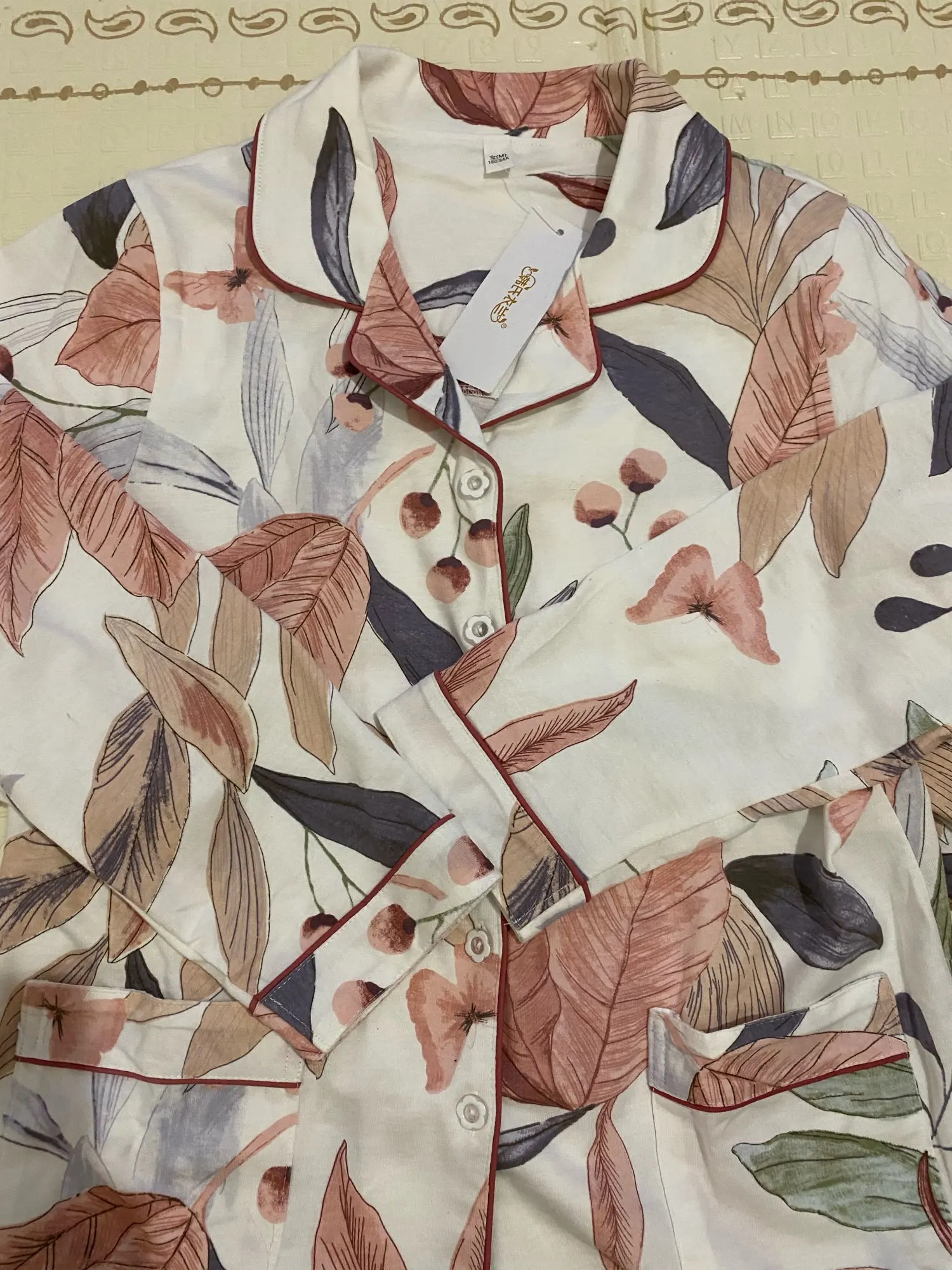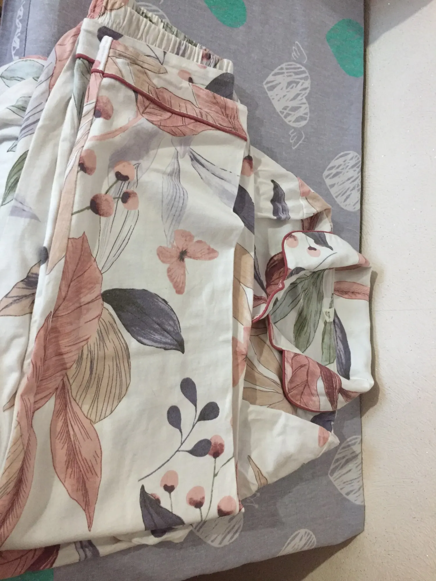 Home / Two Piece / FREE SHIPPING Spring Leaves Printed Pajamas JKP4450