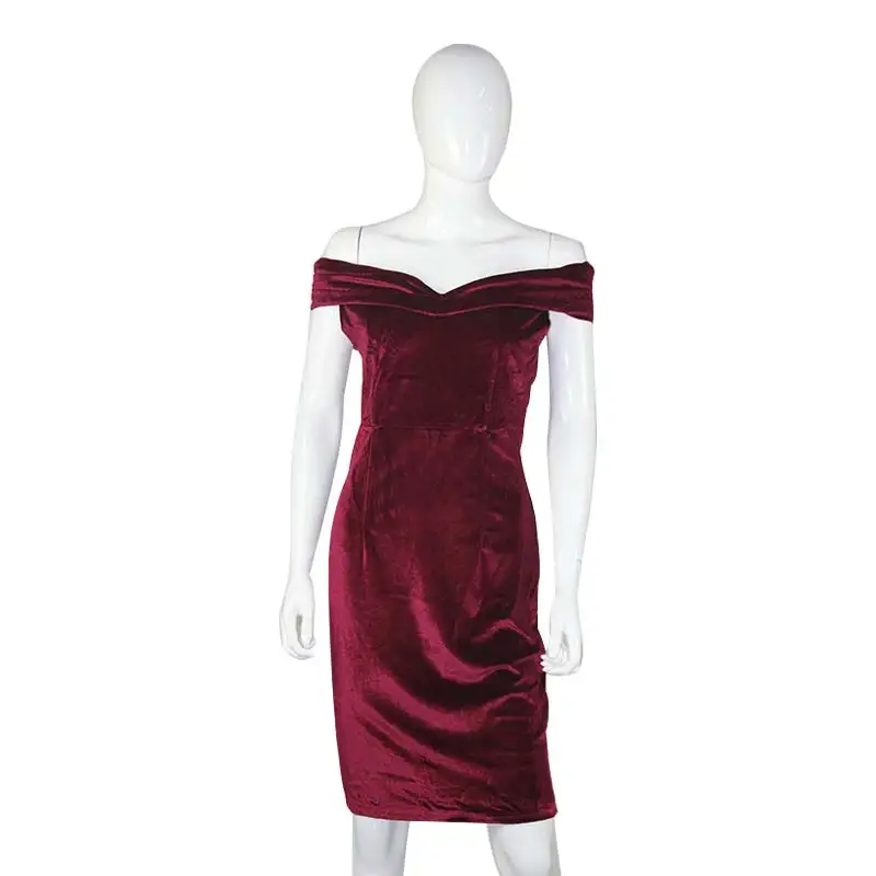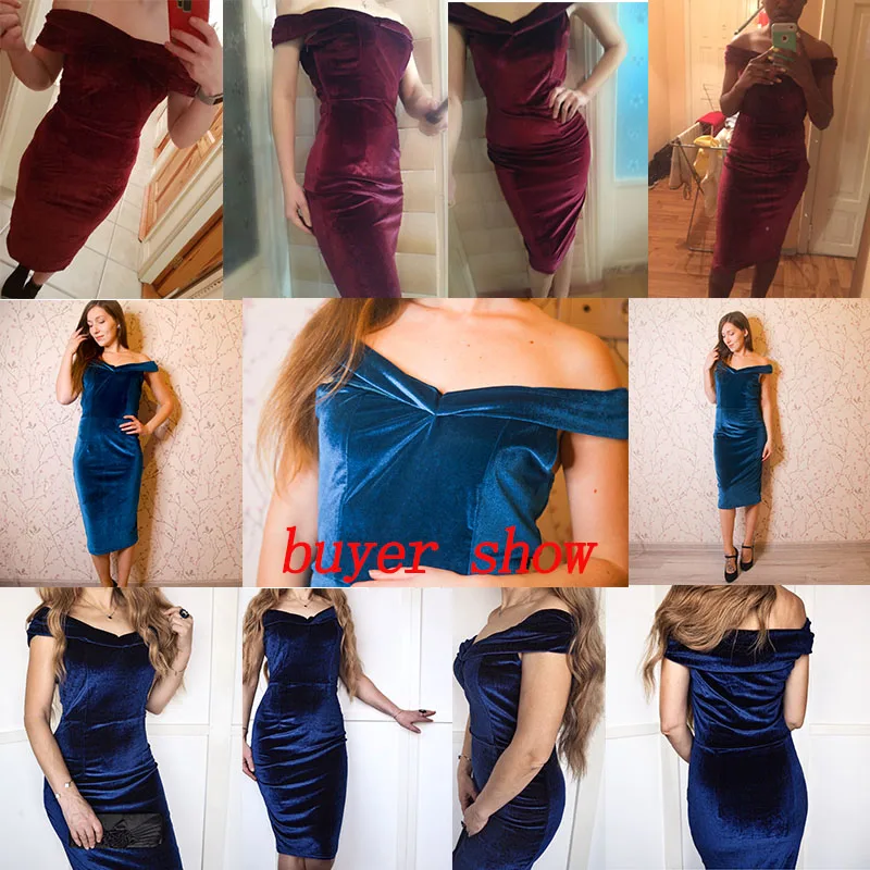 Delivery 2,5 weeks. My parameters are 82 (opg 75)-69-90, height 163 cm, size s-great. Length below the knees. Dress with open shoulders. Side zipper. V-neck. Material-velvet. Good, dense, moderately stretches. Lining is not (and not needed). Dress beautiful color. It looks very interesting, i like it (if it was the size). The quality of the product suited me. I did not find any defects, only a couple extra threads on the wrong side. In general, the dress is cool.