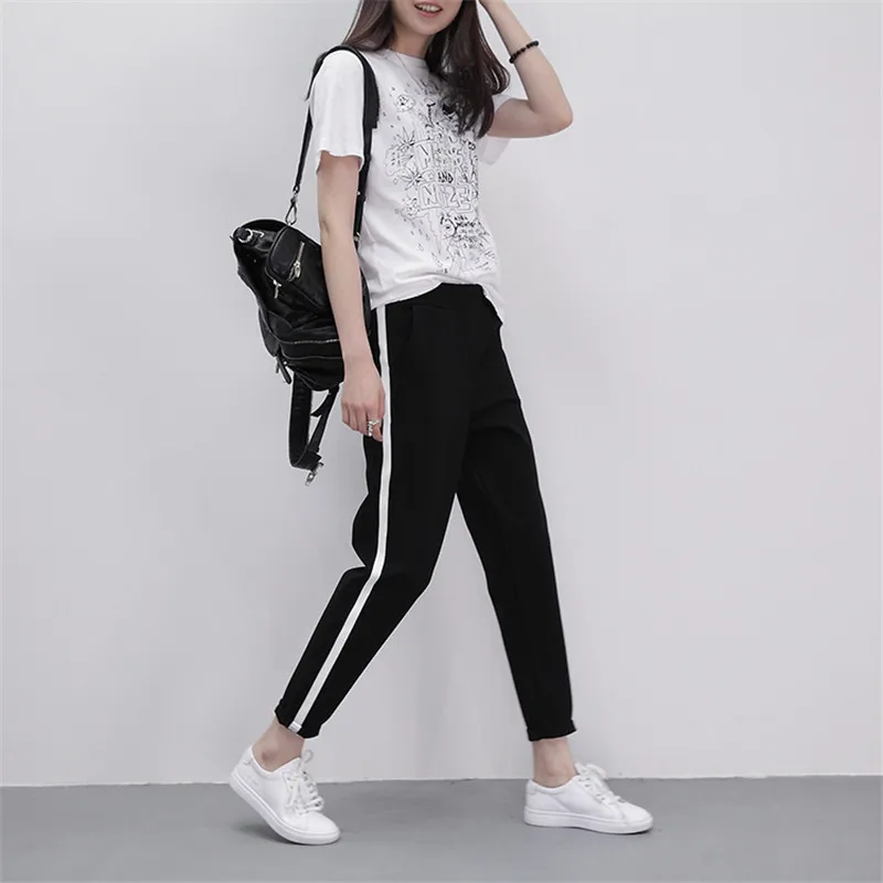 FREE SHIPPING Spring Sweatpants Women Casual Harem Pants Loose Trousers For Women Black Striped Side Sweat Pants Female Plus Size M-XXL JKP2685