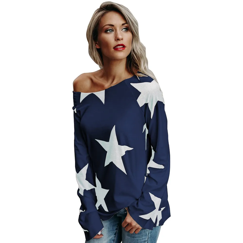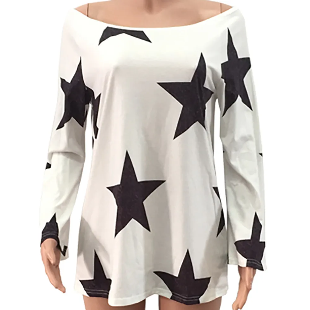 FREE SHIPPING Star Print Sweatshirt Long Sleeve Crop Jumper Pullover JKP1095