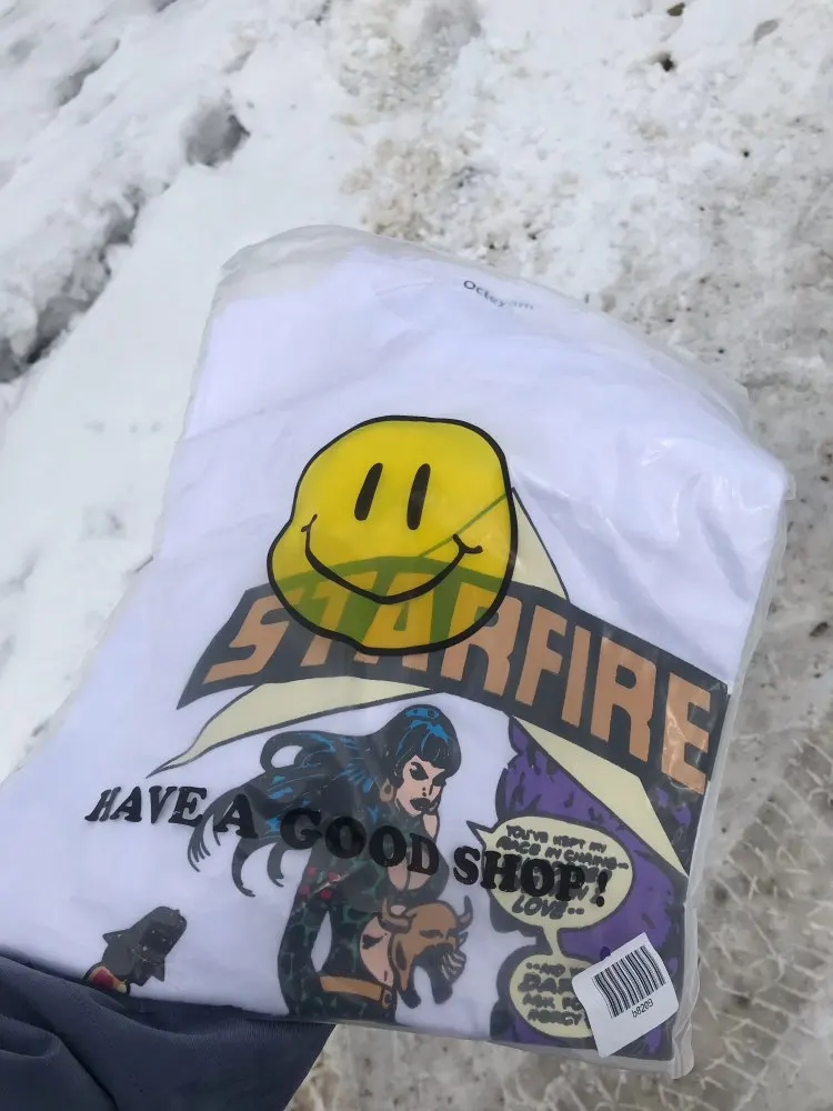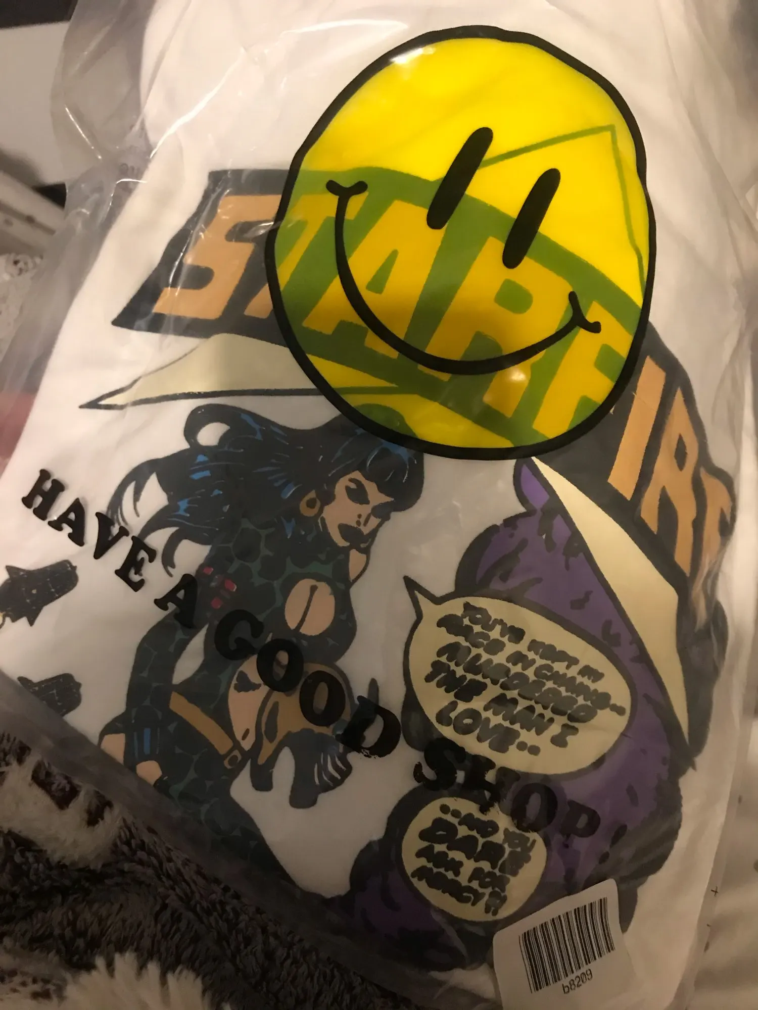 The shirt was just like normal quality, meaning that it was not thin material. I received my package in the mail after checking 17track. Thank you. The graphic print also seems like it'll last awhile.