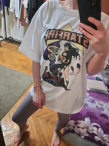 I love this store. I order the second time. The first T-shirt has been worn for 2 years and everything is fine with it. This true fabric is thinner at times. The print is excellent. Sits like a good oversize on my 46 kg and a height of 156. For such a price is just fine