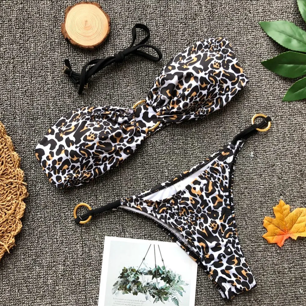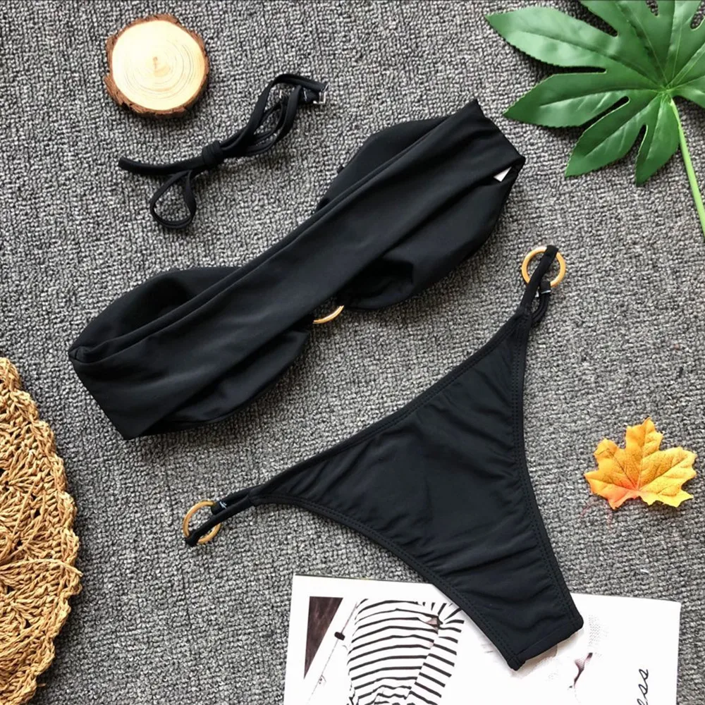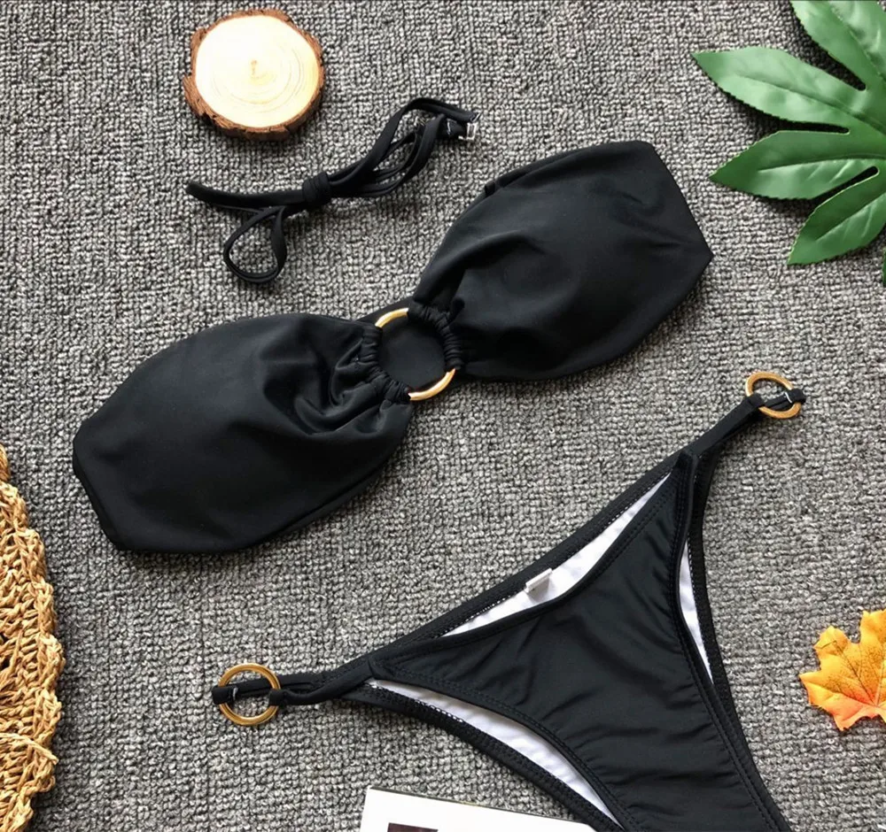 FREE SHIPPING Steel Ring Bikini Set Bandeau Strapless Bikini Set JKP1360