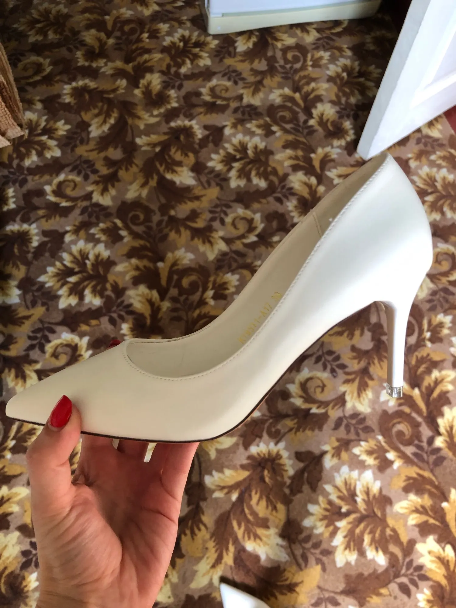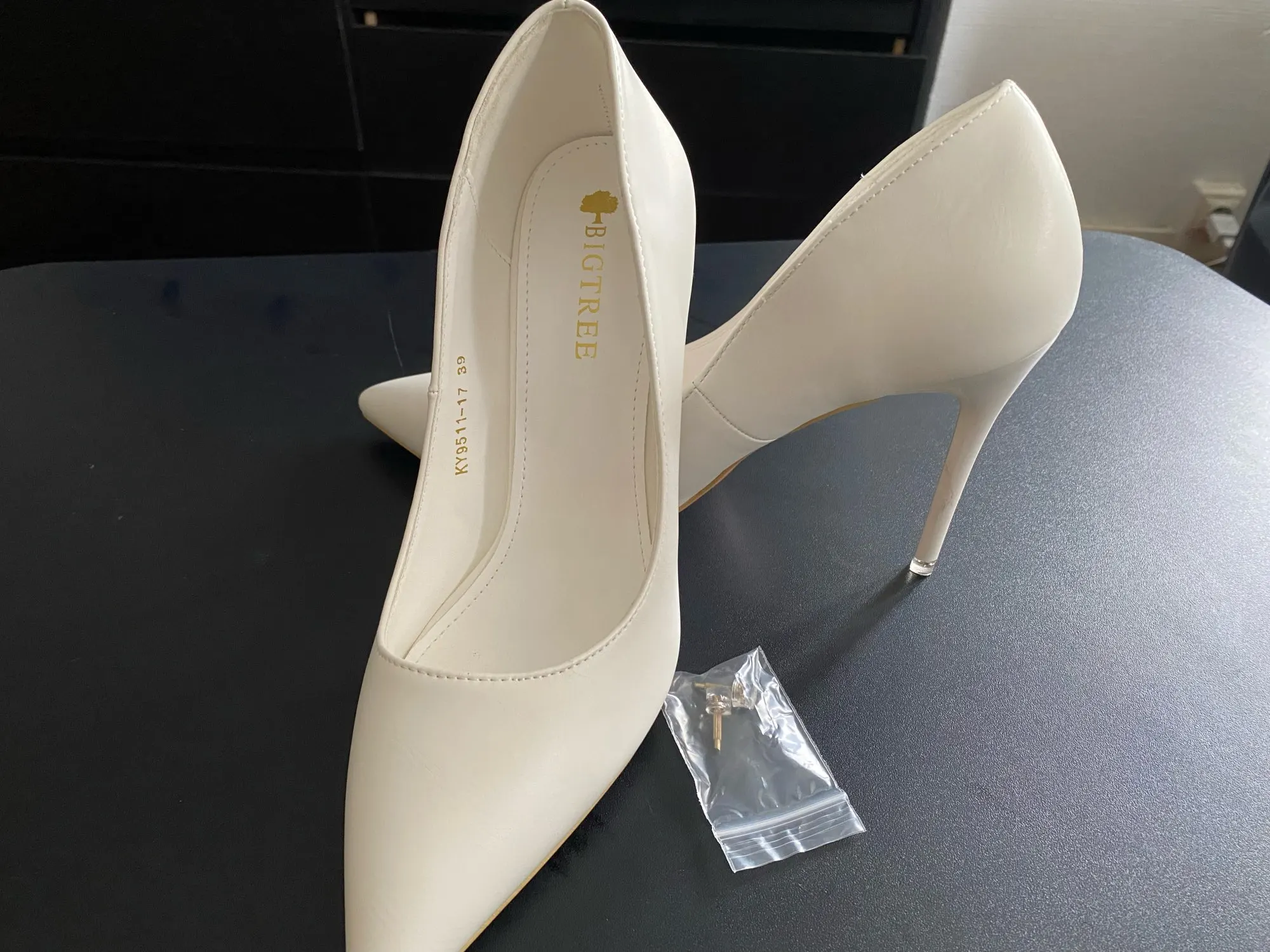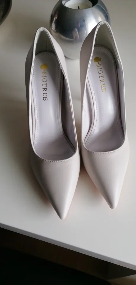 Туфлі чудові, на 38 (24.5)взяла 40, читаючи відгуки, трохи вільні, нога не худа! Можливо підійшов би і 39. Прийшли швидко, якісно запаковані, цілісні. Колір не яскраво білий, а швидше легкий айворі. Є запасні набойки. Стійкий каблук і дуже зручна устілка, м'яка. Я задоволена. Дякую продавцю!