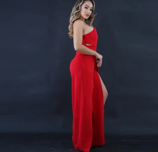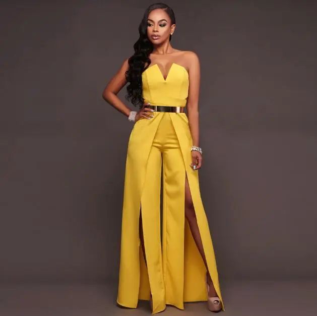 FREE SHIPPING Strapless V Neck Split Romper JKP1189