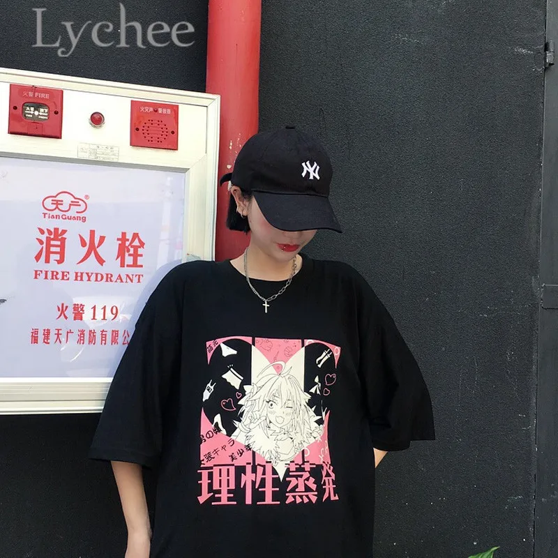 FREE SHIPPING Streetwear Japanese Girl Heart Print Women Top Tees T-shirt Short Sleeve Crew Neck Loose Spring Female T Shirts JKP2180