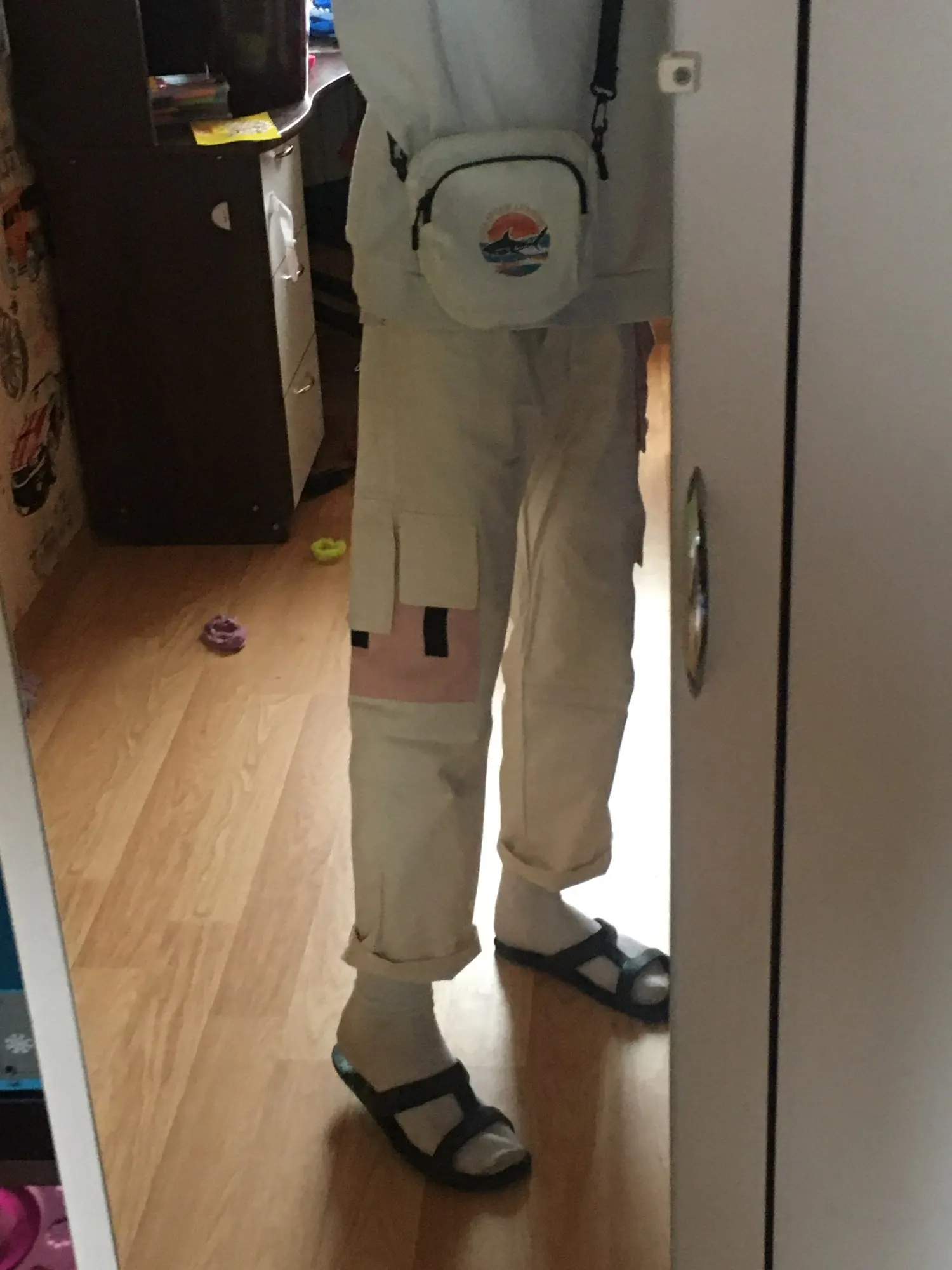 Surprisingly quickly came I'm a girl, but I often take clothes in men's stores because in the women's department everything is very short (my height is 178) Pants are amazing! The length is just above the ankle, so I do not roll them, I think it would be possible to take even 3HL, because they are on an elastic band and on pu- ups Perfectly fit me at the waist (girth of me +-64 cm) The material is felt like a thin jeans, for the summer or warm spring/autumn, the most it will be, although if desired, you can wear it in colder weather, but with, The only thing that is worth paying attention to is that they are very clinging to themselves wool, so be ready for eternal cleaning