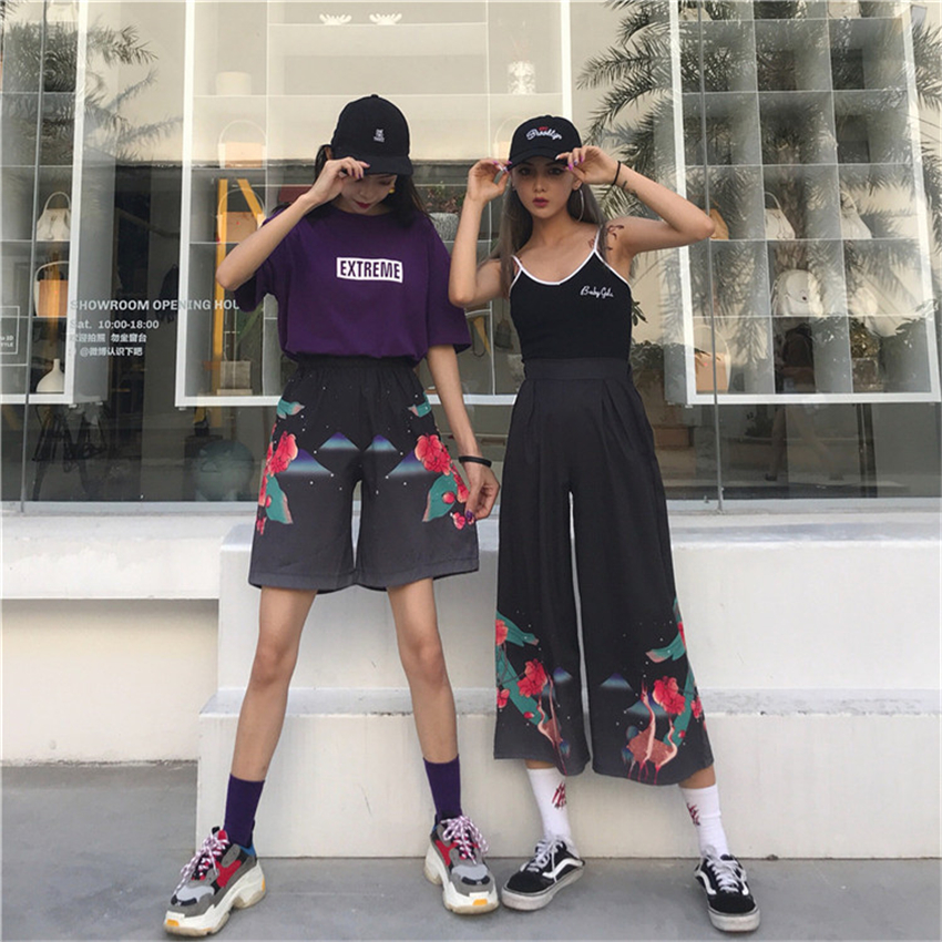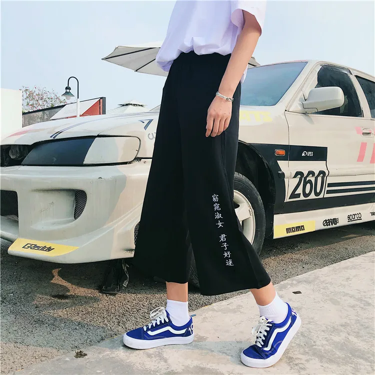 FREE SHIPPING Streetwear Japanese Style Harajuku Wide Leg Pants Woman Loose Kanagawa Print Trousers JKP3783