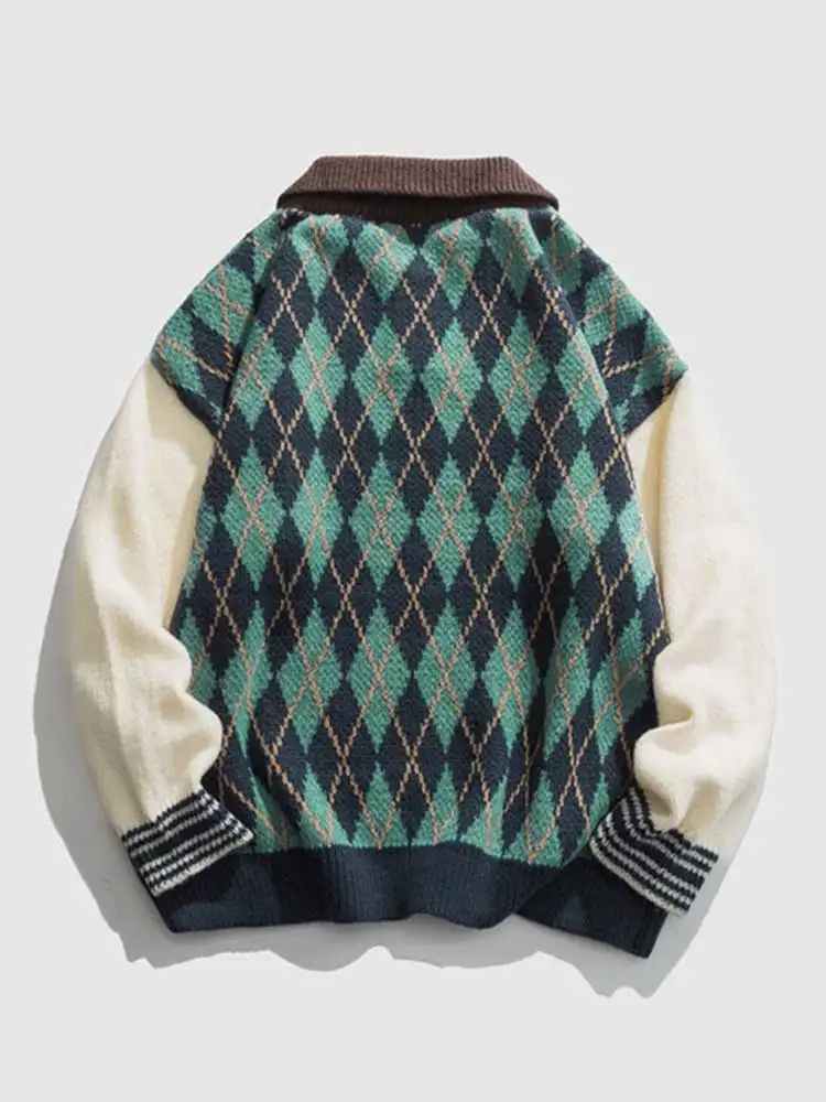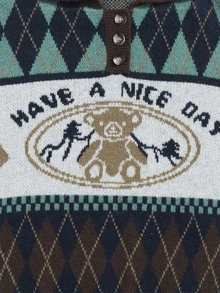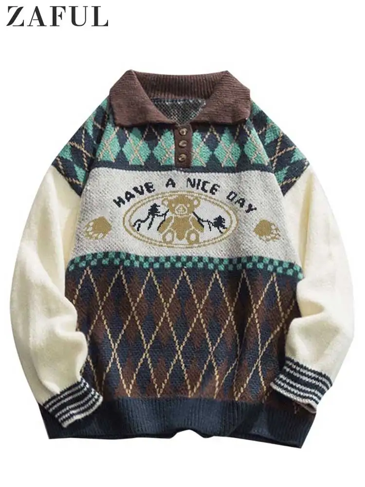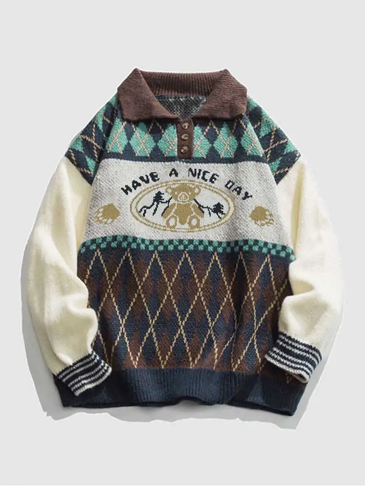 FREE SHIPPING Streetwear Sweaters Ethnic Bear Geometric Pattern Buttons JKP6082