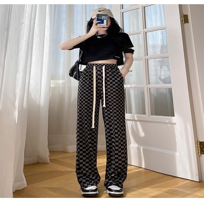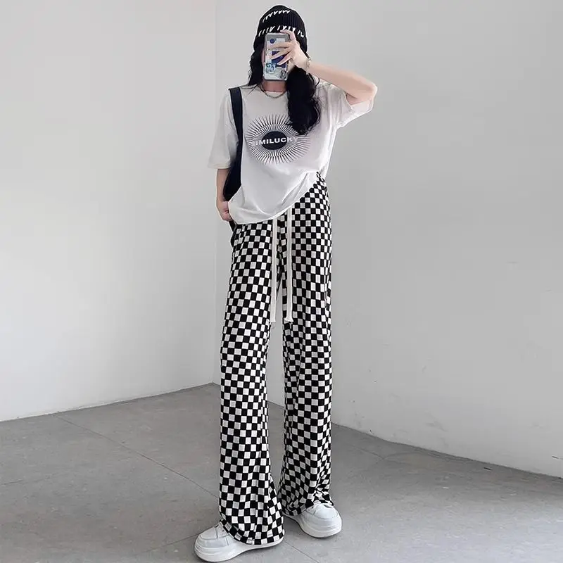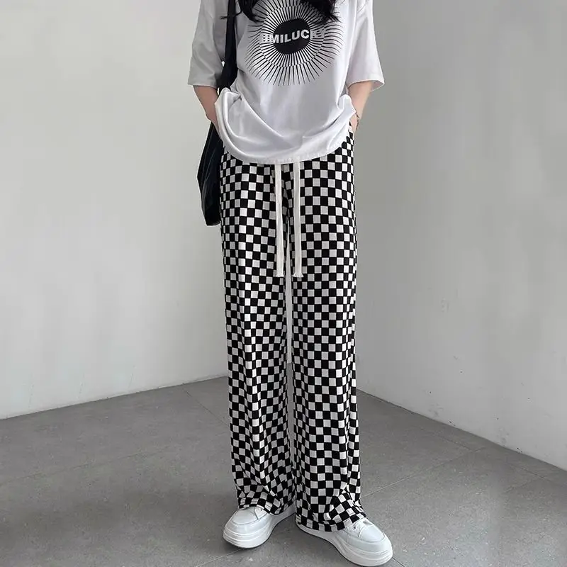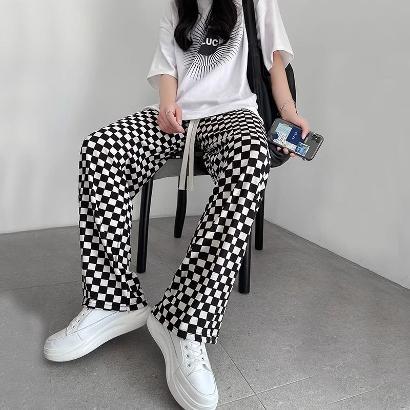 FREE SHIPPING Streetwear Y2K Black White Checkerboard Pants JKP7383