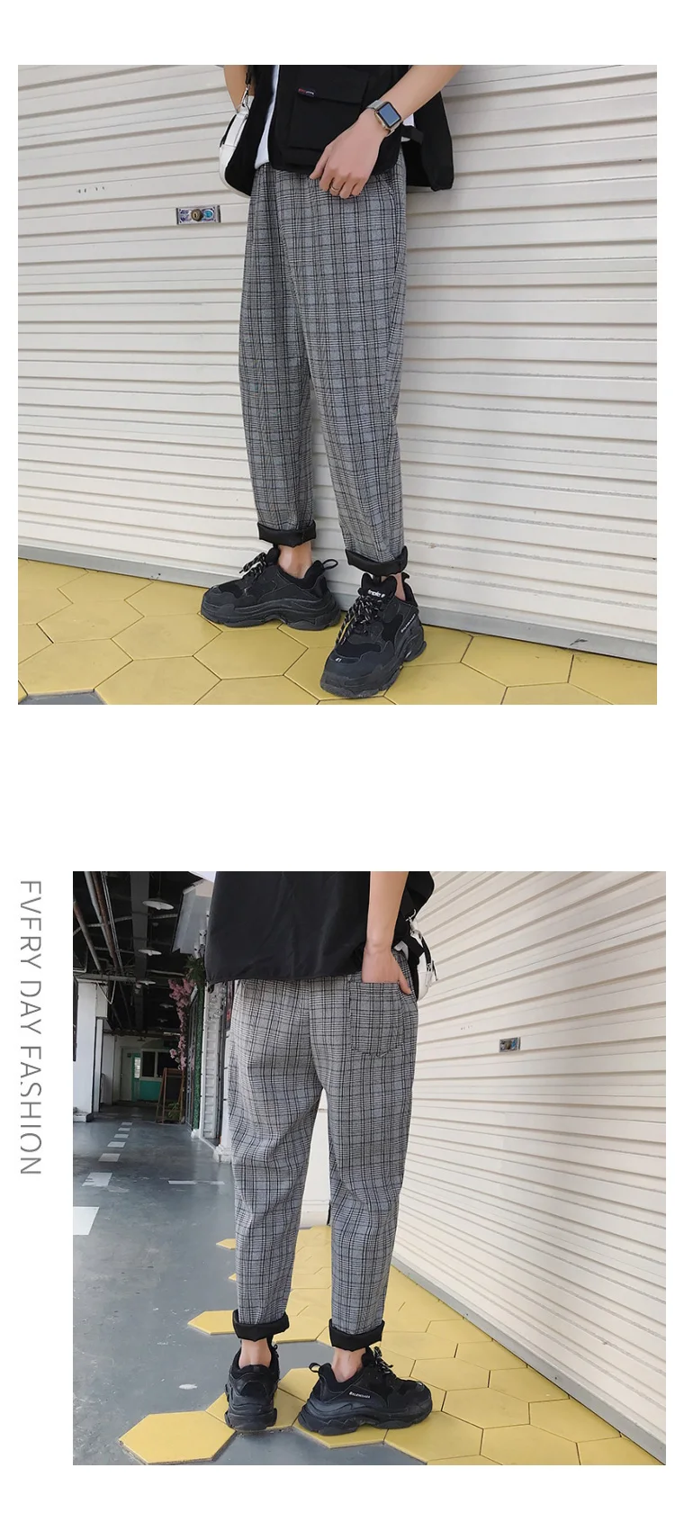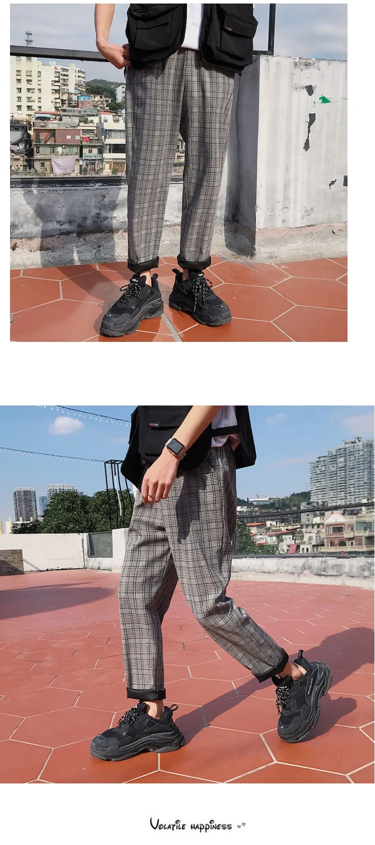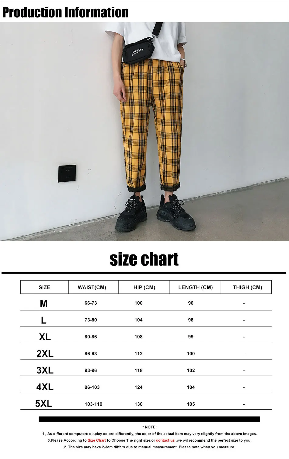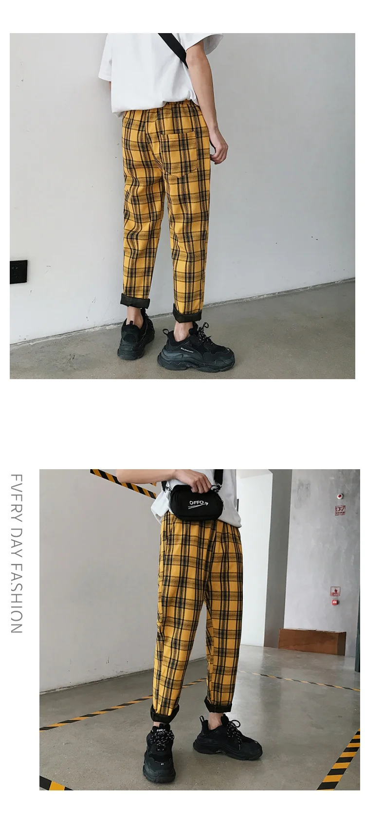 FREE SHIPPING Streetwear Yellow Plaid Pants Joggers 2020 Casual Straight Harem Pants Men Korean Hip Hop Track Pants Plus Size JKP3800