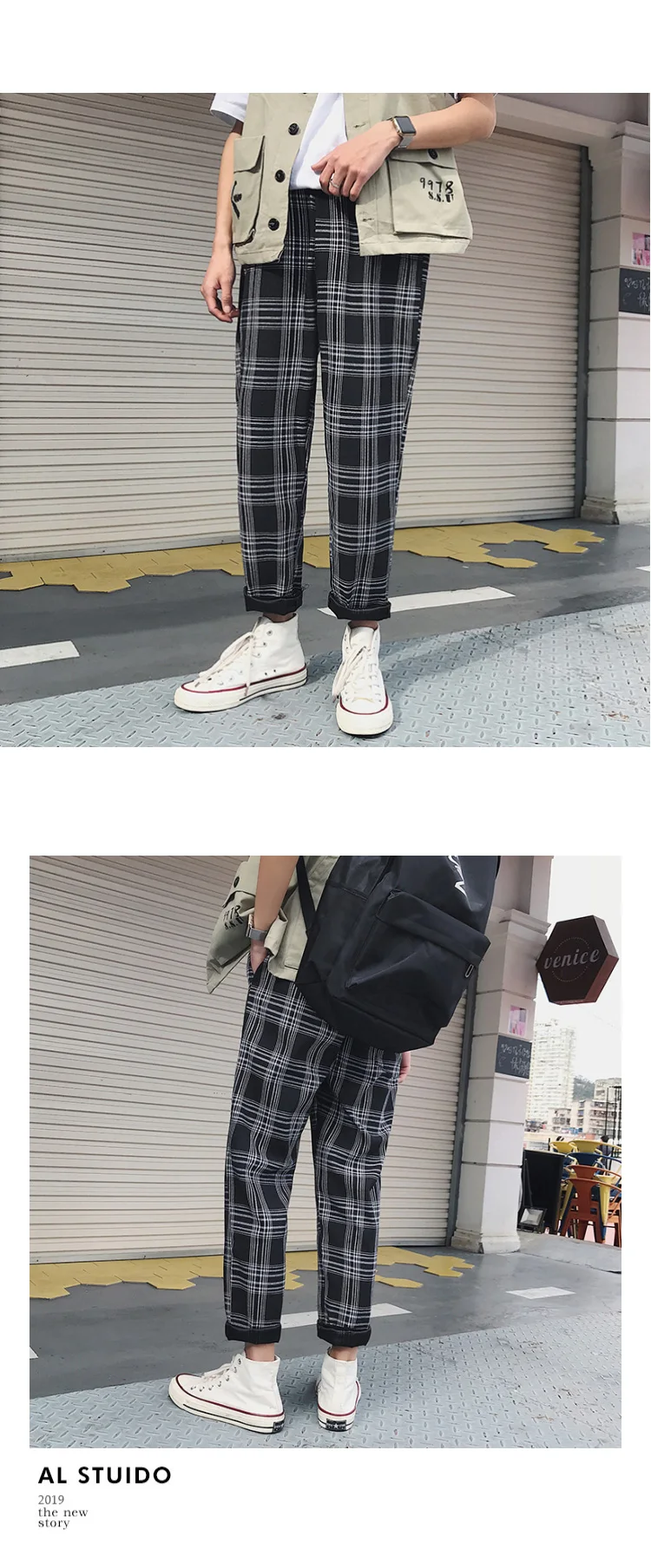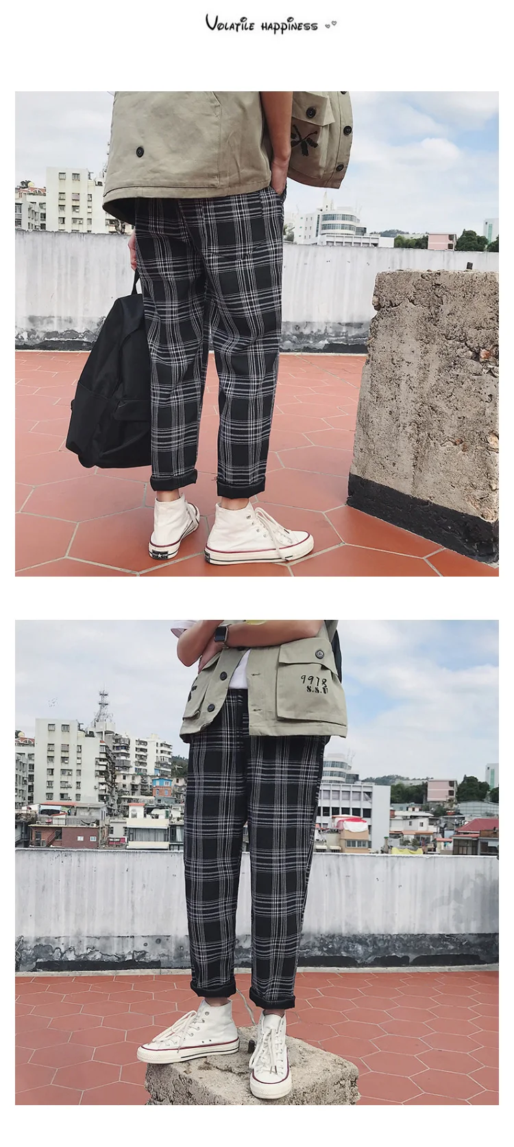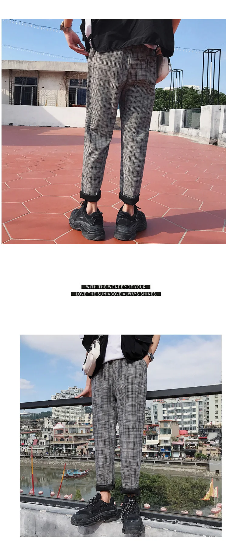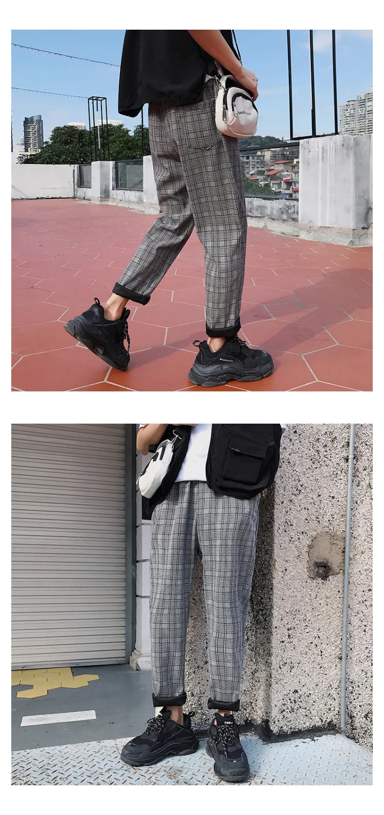 FREE SHIPPING Streetwear Yellow Plaid Pants Joggers 2020 Casual Straight Harem Pants Men Korean Hip Hop Track Pants Plus Size JKP3800