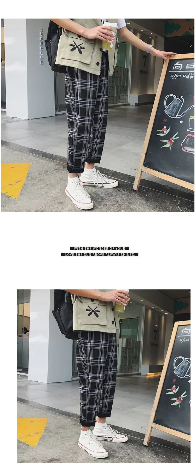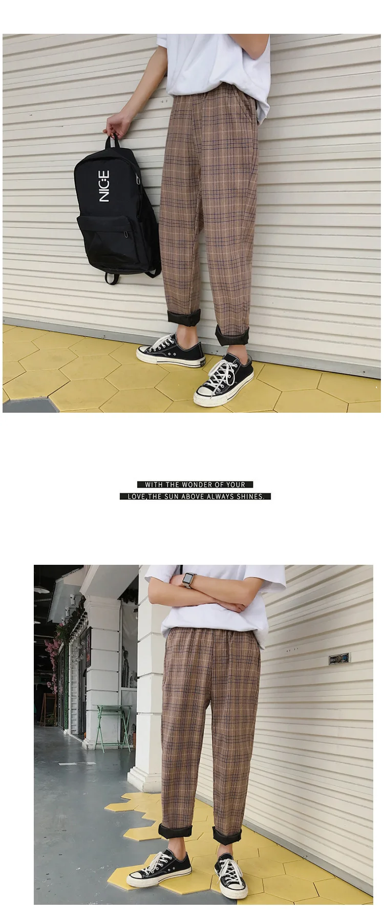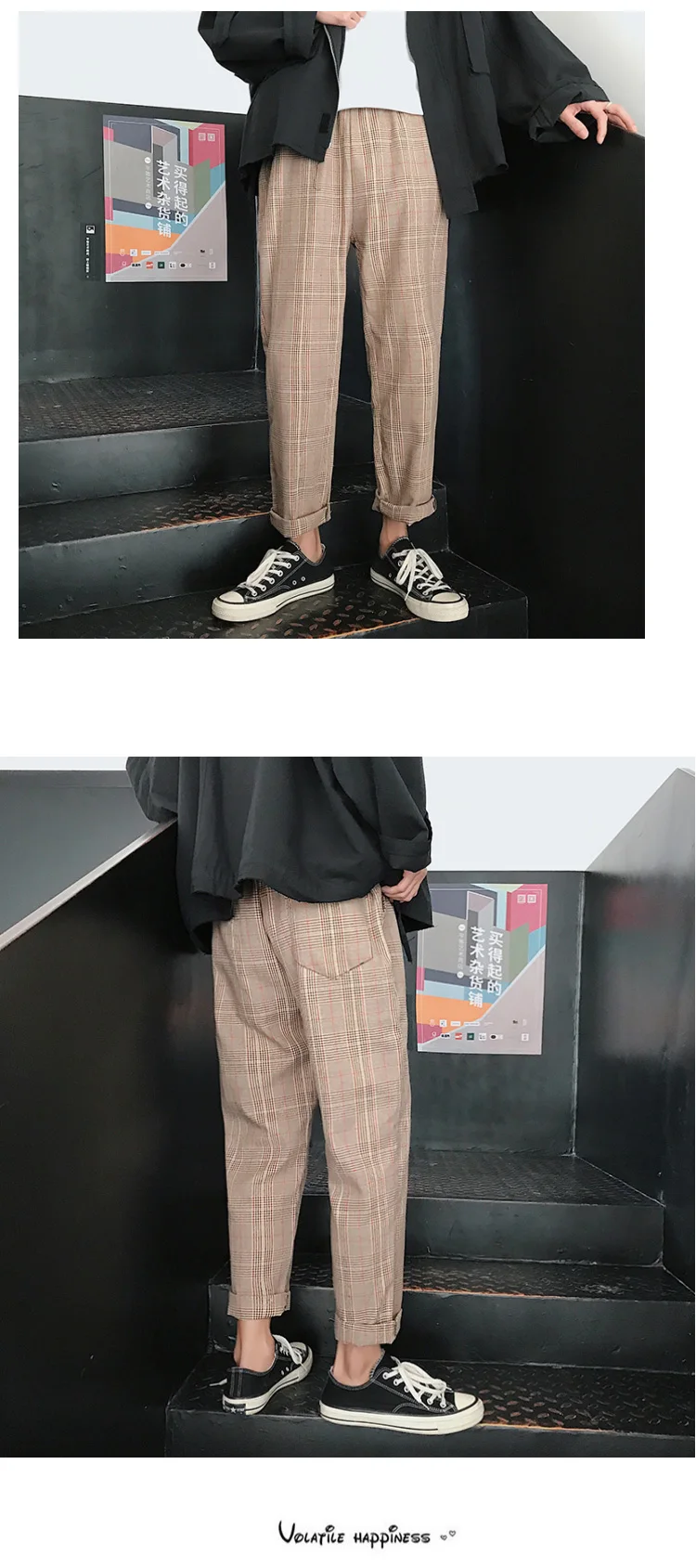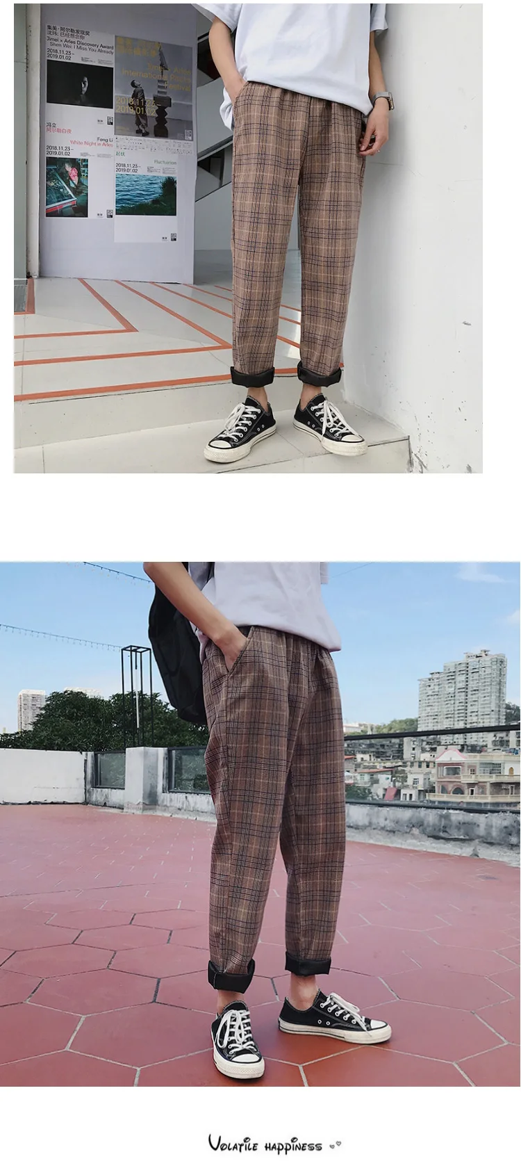 FREE SHIPPING Streetwear Yellow Plaid Pants Joggers 2020 Casual Straight Harem Pants Men Korean Hip Hop Track Pants Plus Size JKP3800