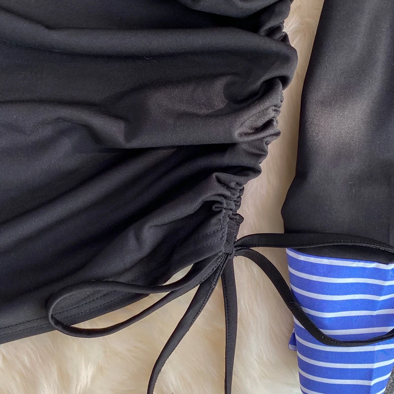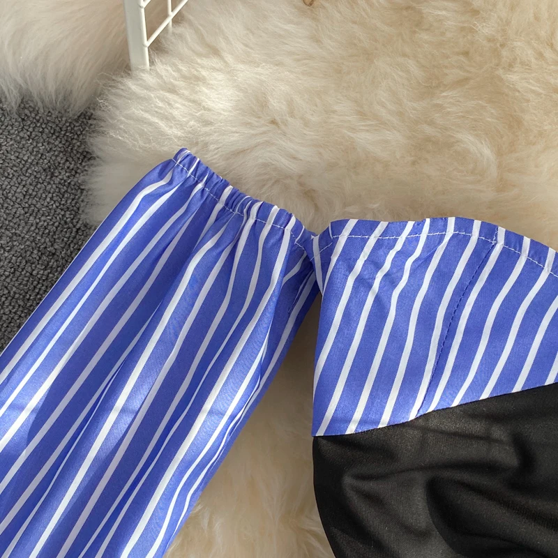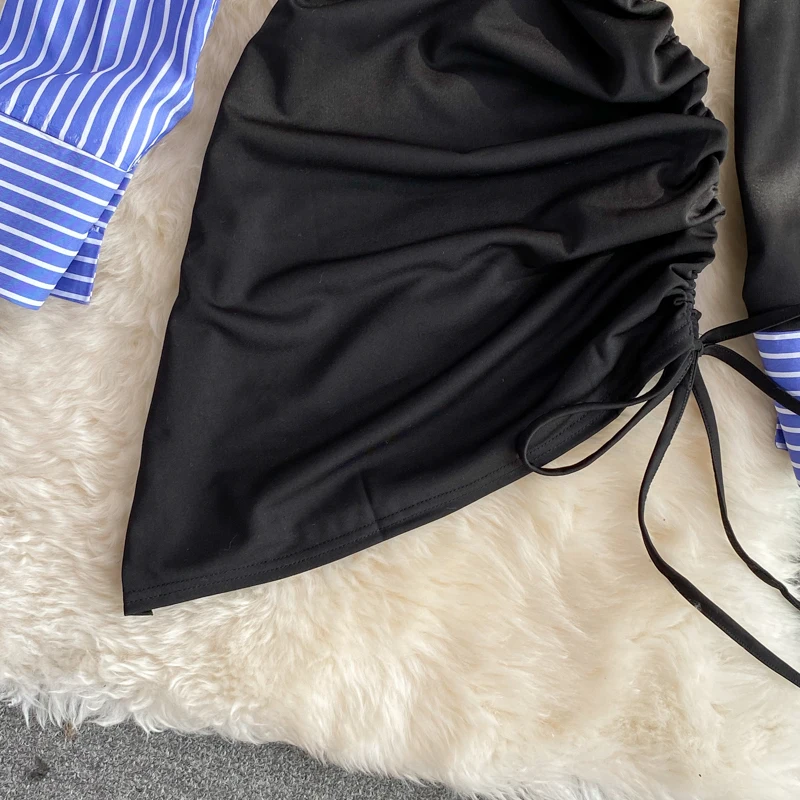 FREE SHIPPING Striped Bodycon Mini Dress Pleated Off Shoulder Slash Neck JKP4859