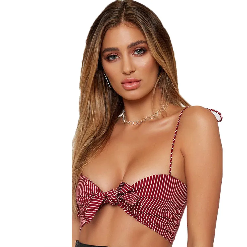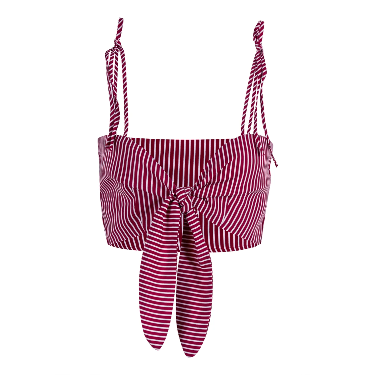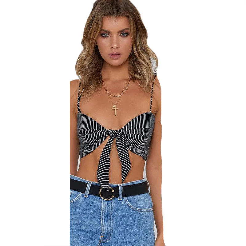 FREE SHIPPING Striped Bow Tie Camisole Tank Tops Women Summer Sexy Basic Crop Top Streetwear Fashion Cool Girl Cropped Tees Camis Clothes JKP1662