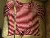 FREE SHIPPING Striped Bow Tie Front Cropped T shirt JKP1181