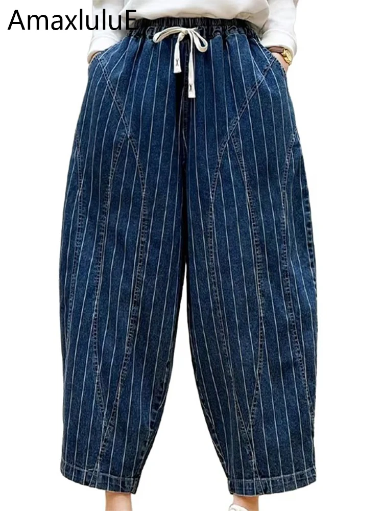 FREE SHIPPING Striped Classic Denim Pants Vintage Loose Casual Gothic Wide Jeans JKP7377