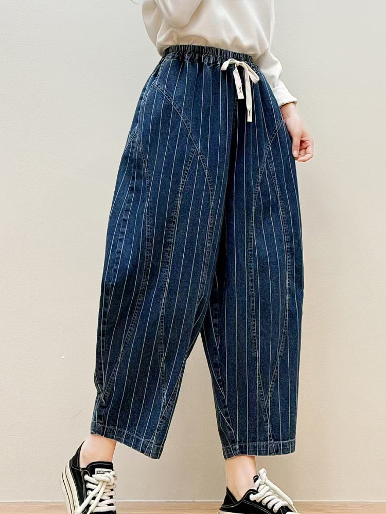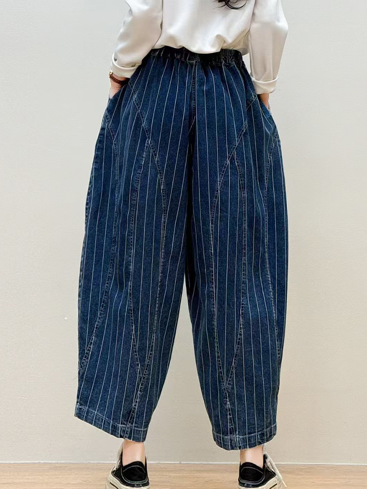 FREE SHIPPING Striped Classic Denim Pants Vintage Loose Casual Gothic Wide Jeans JKP7377
