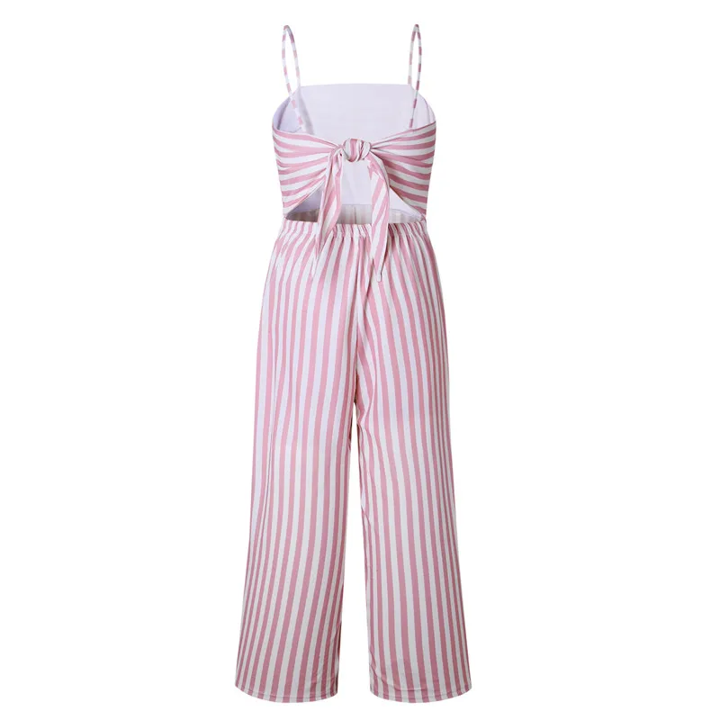 FREE SHIPPING Summer Deep V Neck Sashes Jumpsuit Women Half Sleeve Casual Rompers Overalls Sexy Office Lady Striped Long Pants Jumpsuits JKP2378