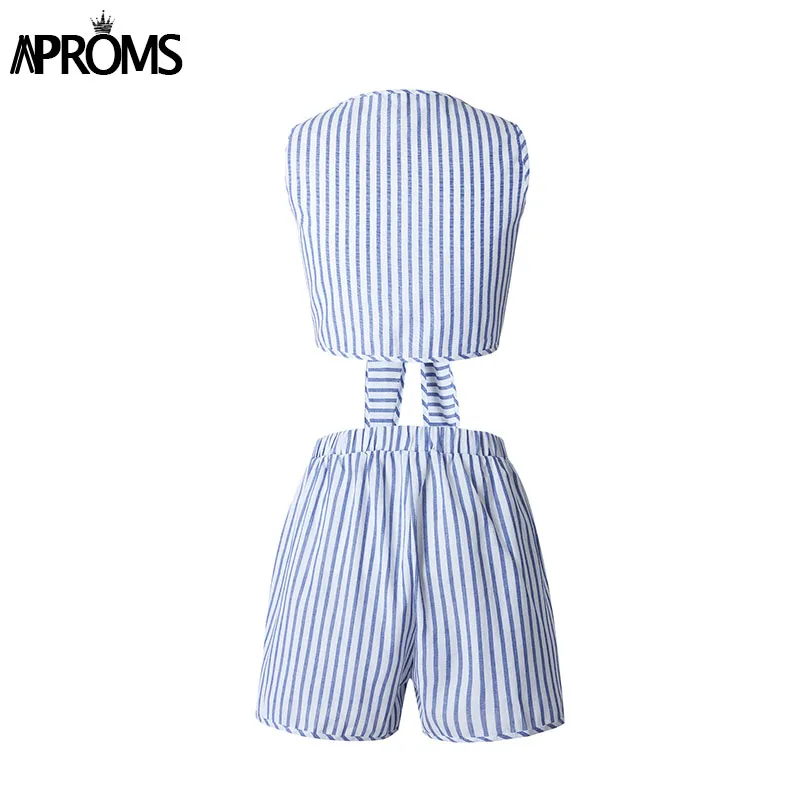 FREE SHIPPING Striped Tied Up Back 2 Piece Set Jumpsuit JKP1447