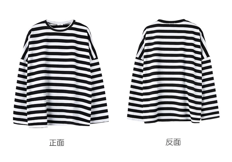 FREE SHIPPING Striped Tshirt Long Sleeve Casual Oversized Harajuku Style JKP5864