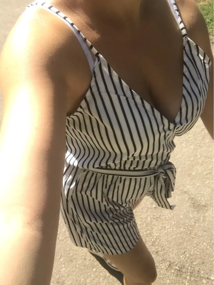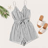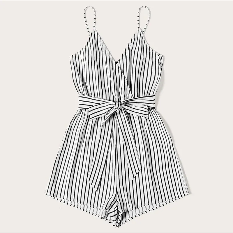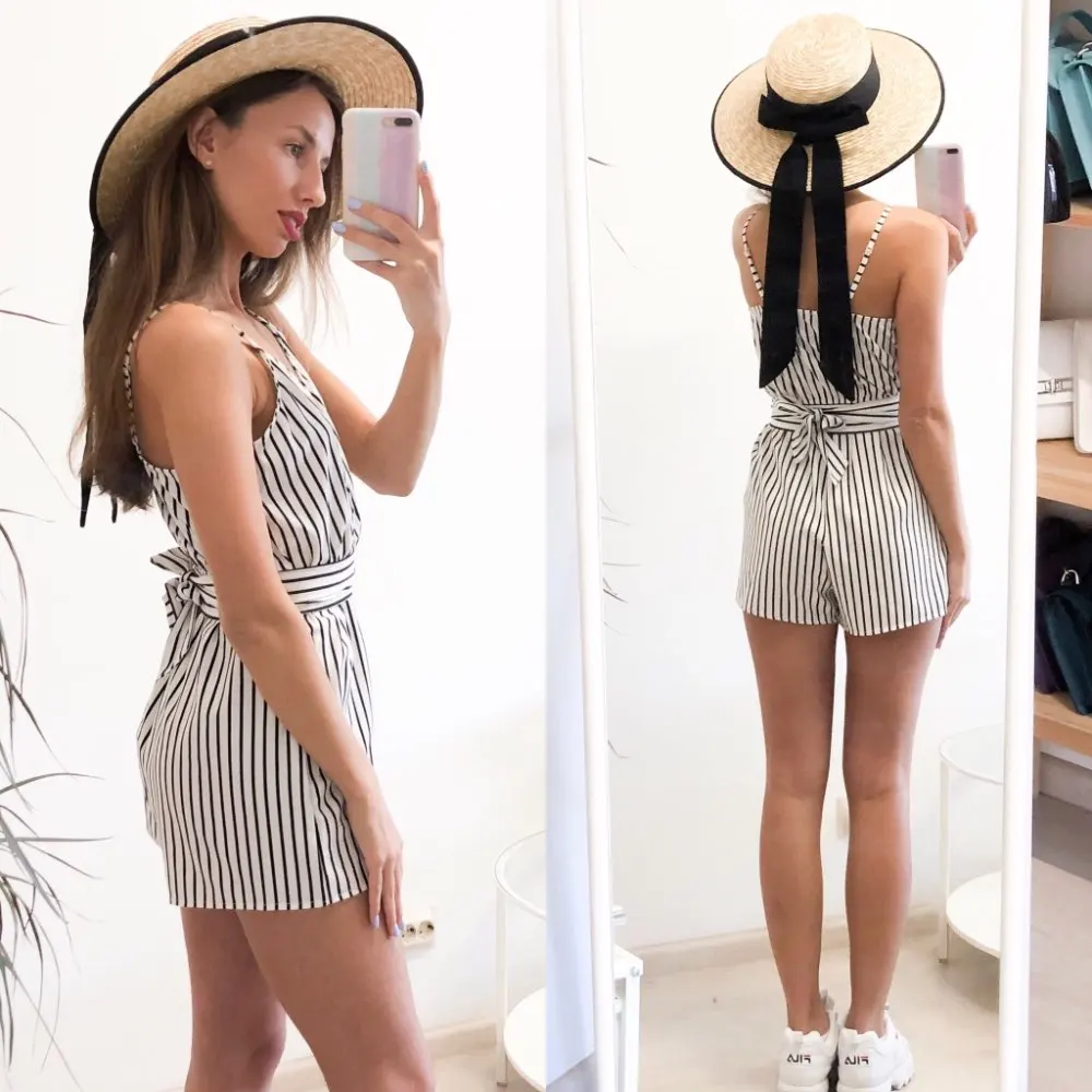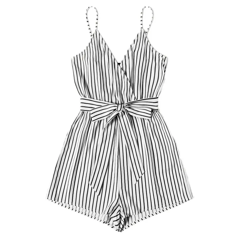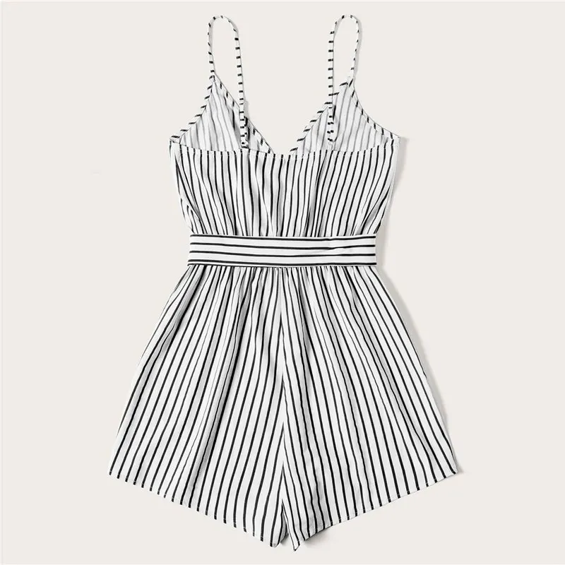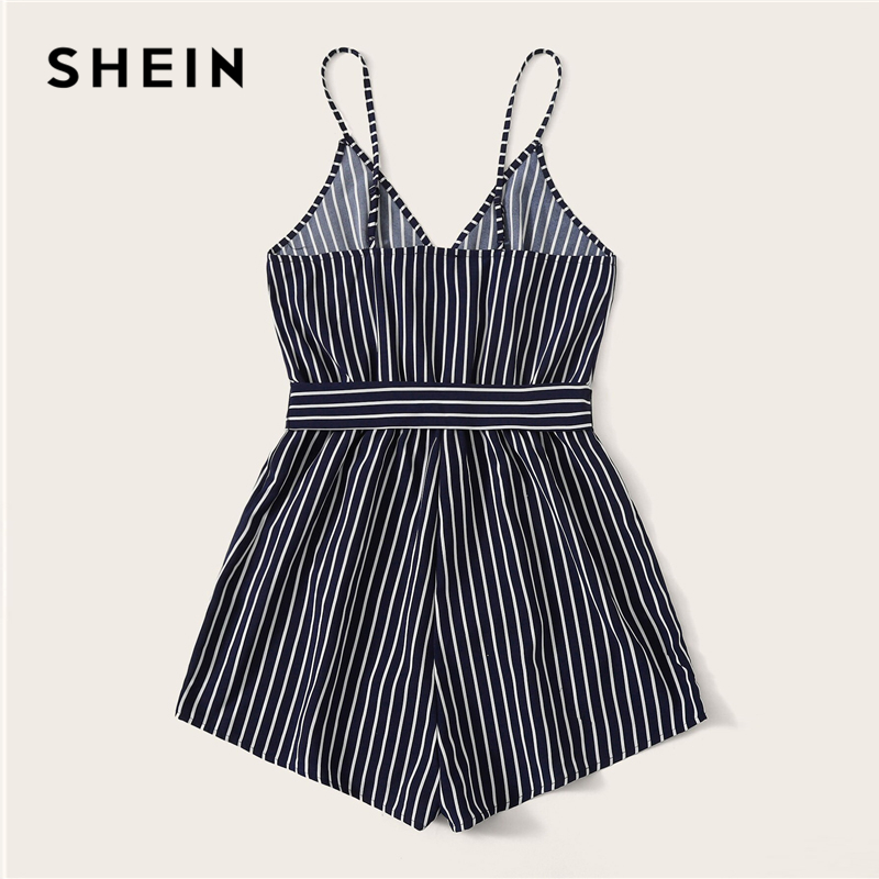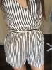 Onesie polyester and spantex white black striped, cross on the front and equipped with a long tuck into thin belt loops. Comfortable fabric and comfortable suitable to summer. The length of shorts is perfect: nor too short nor too long. I wear a size m and are high 162 cm and size M is perfect. Adattissimo for going to the beach, I find it also perfect for a hot day in the city and, wishing, for a casual evening. . What to say to this shop? Shein is a store really outstanding! Customer service is courteous and helpful, the quality of its goods is very good, it has great care in packing in individual envelopes with company logo equipped with zipper, the latest shipments arrived free with courier in one week! VE I highly recommend it. I definitely ricomprerò.