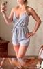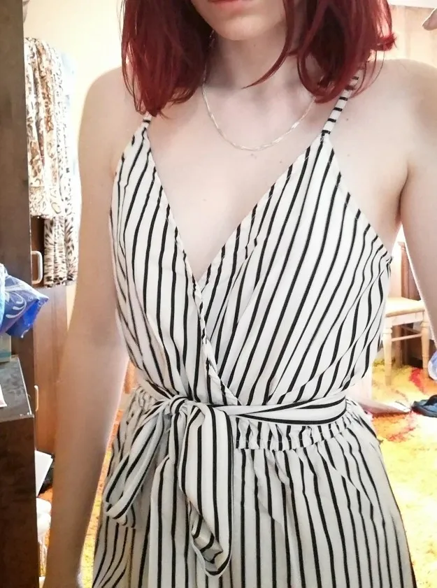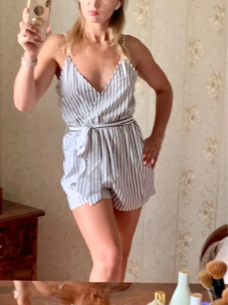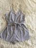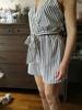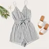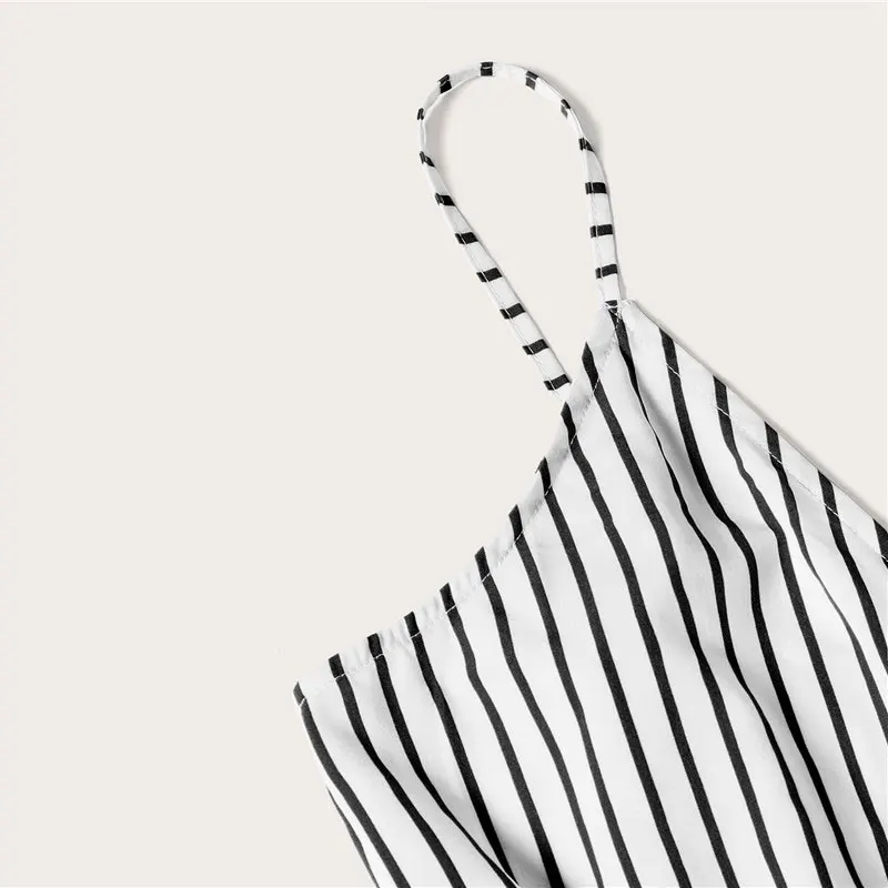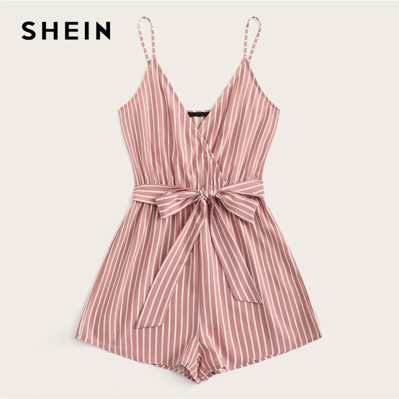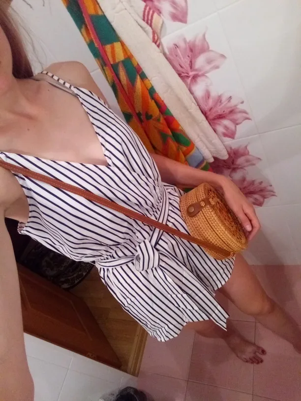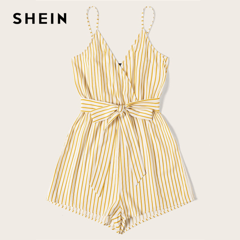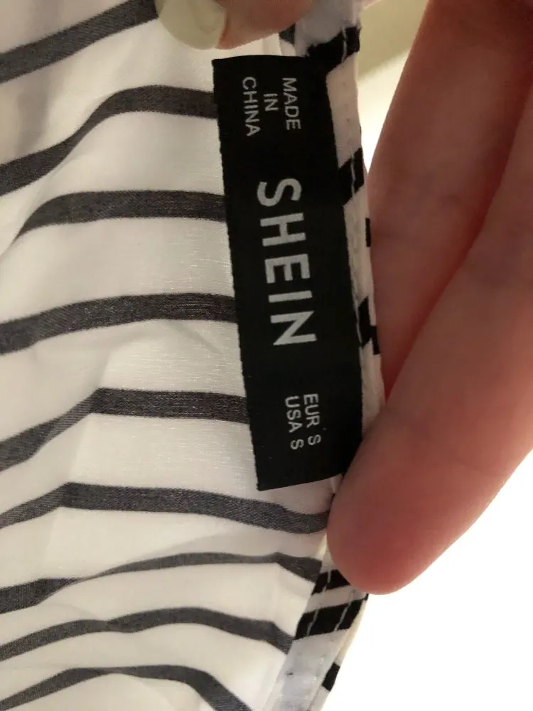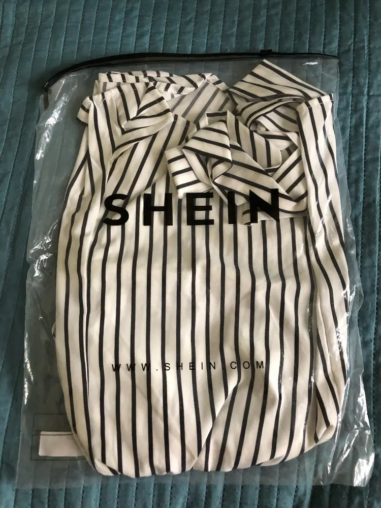 Onesie polyester and spantex white black striped, cross on the front and equipped with a long tuck into thin belt loops. Comfortable fabric and comfortable suitable to summer. The length of shorts is perfect: nor too short nor too long. I wear a size m and are high 162 cm and size M is perfect. Adattissimo for going to the beach, I find it also perfect for a hot day in the city and, wishing, for a casual evening. . What to say to this shop? Shein is a store really outstanding! Customer service is courteous and helpful, the quality of its goods is very good, it has great care in packing in individual envelopes with company logo equipped with zipper, the latest shipments arrived free with courier in one week! VE I highly recommend it. I definitely ricomprerò.