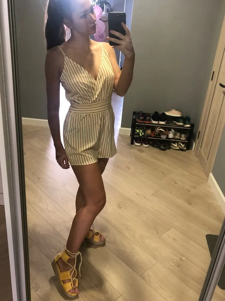 He's amazing! On vacation i'll put it in the suitcase first! Stylish, minimalist) breathable, but not because of the material, but because of the fit Some pros! Not in vain ran after him to the post office, as in the old days))) Shipping to petersburg about 2,5 weeks Color-black and white. Eternal classic) Material-polyester, spandex Synthetic fabric, body feels comfortable Does not shine through. Quality. Small jambs in the form of threads, as usual, were. But in general, there are no complaints to overalls) On the parameters 84*66*93, shoulders 38 cm and height 172 cm ordered the size s. in the chest area sits freer than i would like. But you can wear it) i was afraid that the smaller size will not sit on the growth, but now i understand that it would be better to take xs