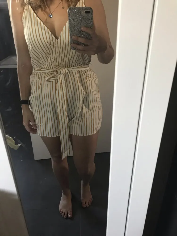Very good overalls in stripes, looks beautiful. Conveniently in that the straps are adjustable. I took the size s, sat perfectly!