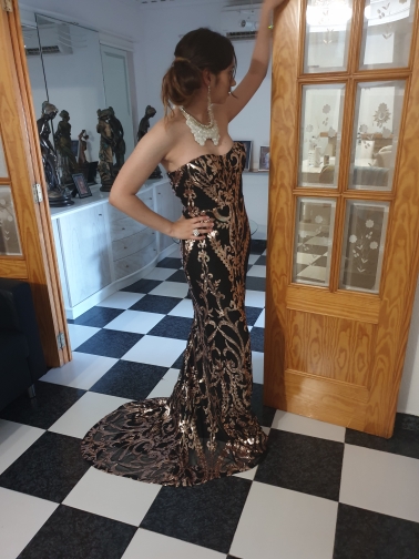 The dress is exactly like the pictures. I order it still in Silver all gings one size smaller. It was very fast delivered before the announced Time. full Recommended Buy!