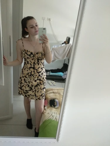 Thanks to the comments I took a size above so the M instead of an S and it suits me perfectly. The material is super nice, the only problem is that at the bust, the dress does not kiss the chest