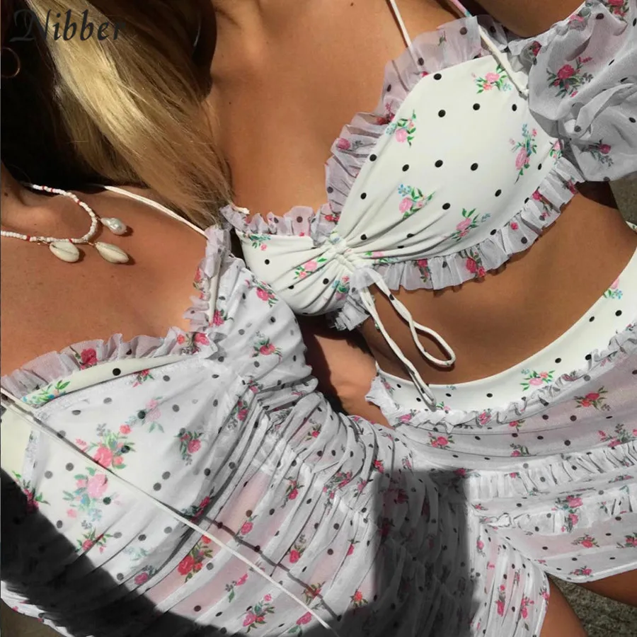 The model consists of two pieces Top + skirt The skirt has elastic waist, 3 small ruffles and is lined. The top has small sleeves with shirring, A beautiful neckline and a small drawstring at the center of the breast that allow you to shorten the top leaving midriff discovered. Even the top is lined and it is not clear. Seams are accurate, no wire dangling. No Smell. The fabric is very good quality. The fabric is made of tulle with fancy floral, good thick, is not transparent and does not shine. It is very soft to skin contact. Inside is present the label with the composition and washing mode. The label of composition is 95% Polyester and 5% Spandex. Washable at 30 °. The fabric is Very stretchy and allows for a great fit. Slips quietly. Don 'T lose the shape and adheres well. The pattern is short (so my niece will show its beautiful legs.) Only available in white color with small colored flowers.