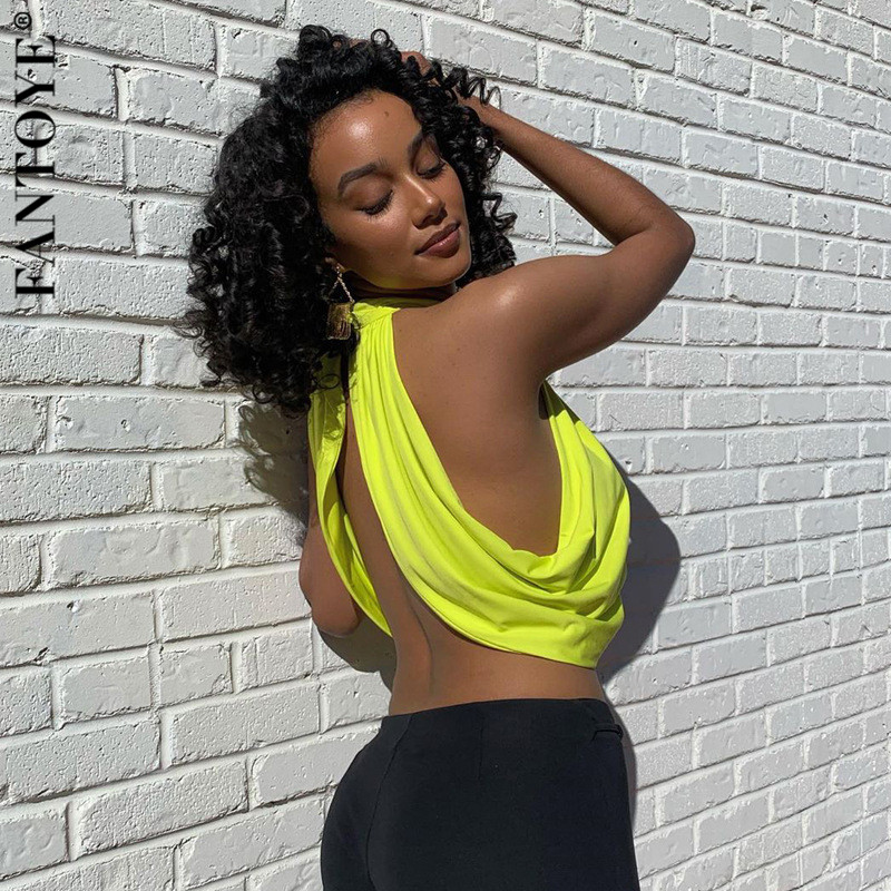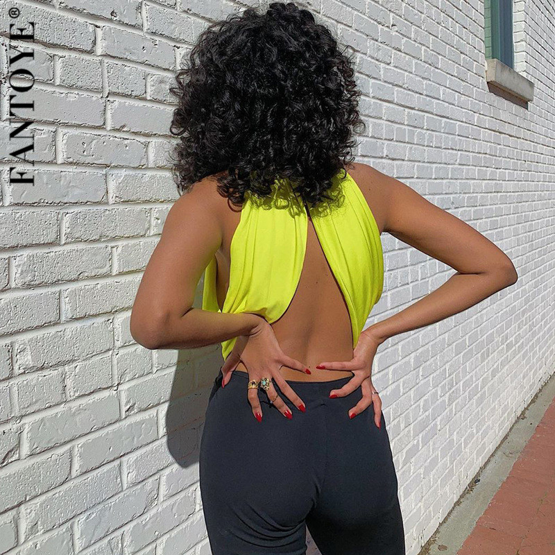 FREE SHIPPING Summer Casual Halter Crop Top Backless Party Outfit