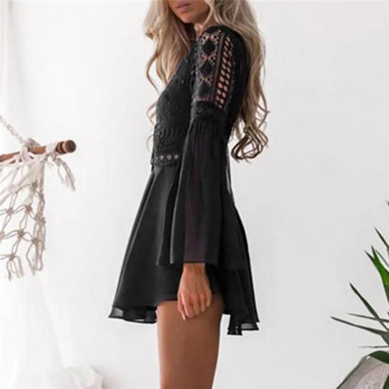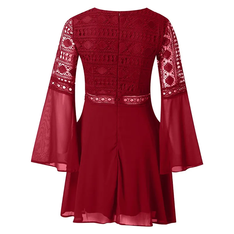 FREE SHIPPING Summer Dress Women Lace Long Sleeve A-Line Dress Bandage Party Dress Fashion Sexy Casual Dress JKP108