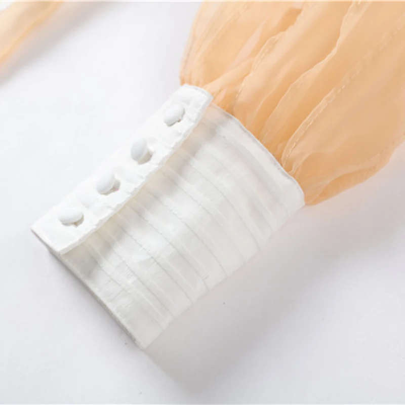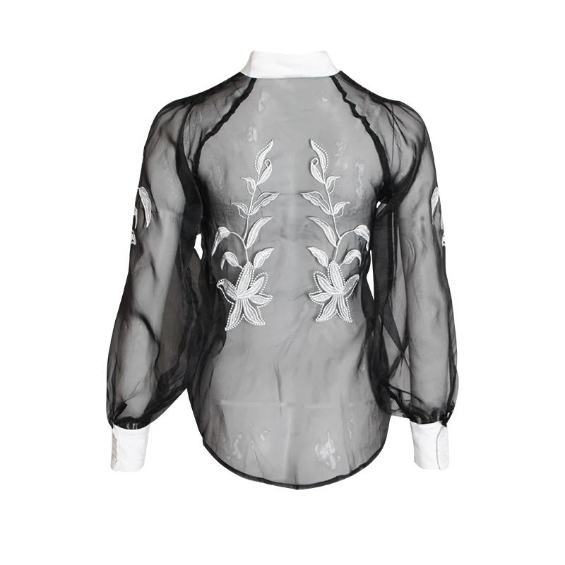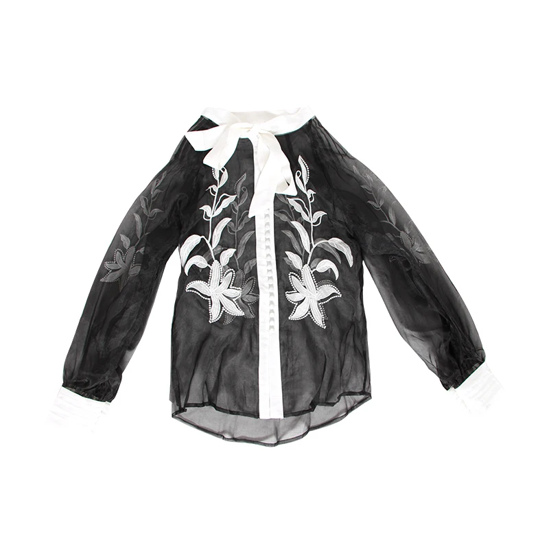 FREE SHIPPING Summer Embroidery Patchwork Women Blouse Bowknot Collar Lantern Sleeve Perspective Shirt Female Fashion Casual JKP2127