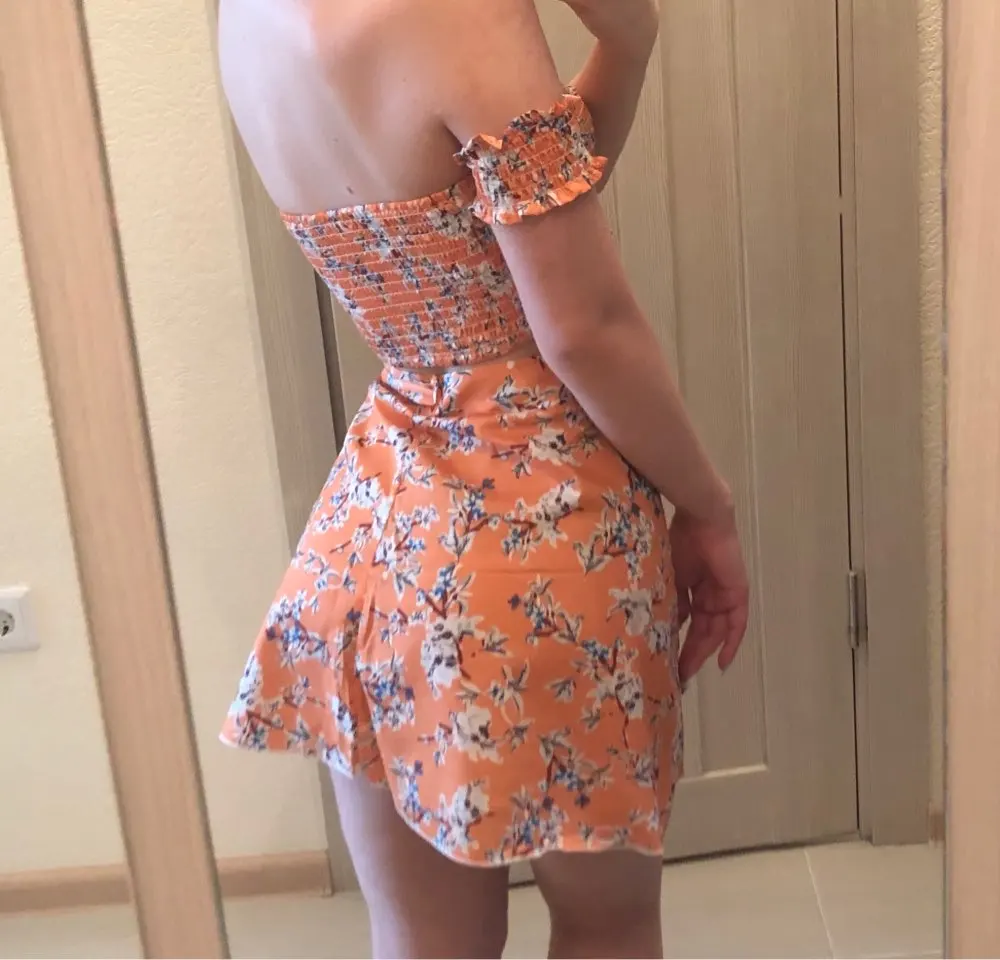 FREE SHIPPING Summer Sexy Women’s Sets Off Shoulder Floral Print Chiffon Two Pieces Beach Set Off Shoulder Crop Tops and Skirt Casual Suits JKP1676
