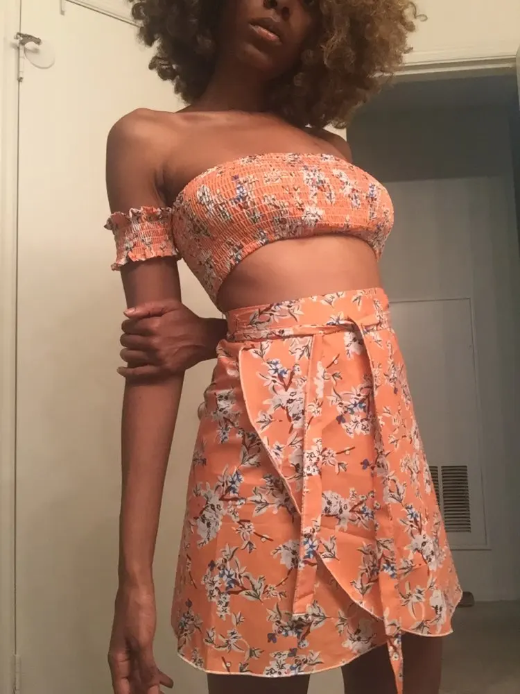 shipping was fast. material is nice. skirt is great, top is reaaally small, I’ll probably just wear it to beach or something. overall nice